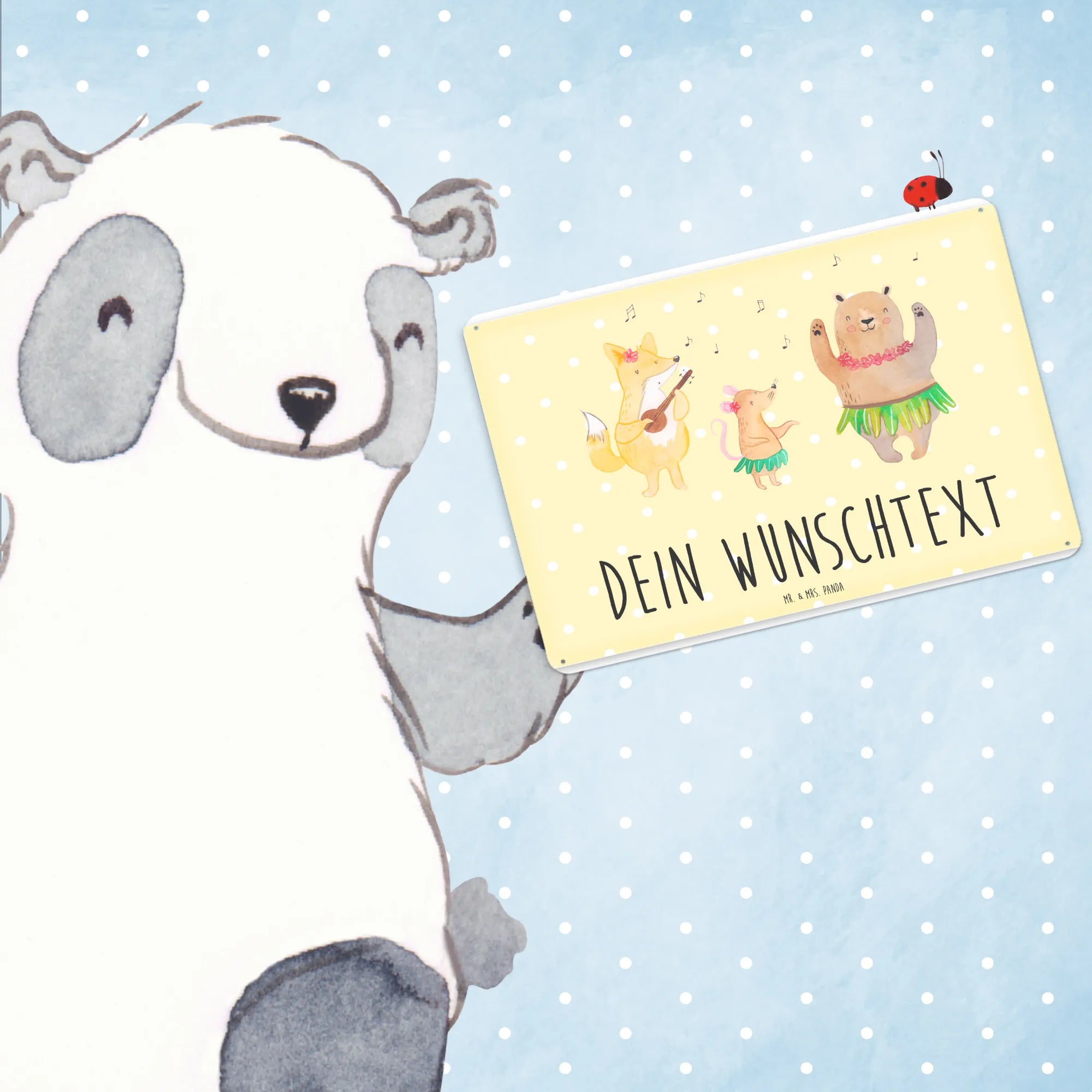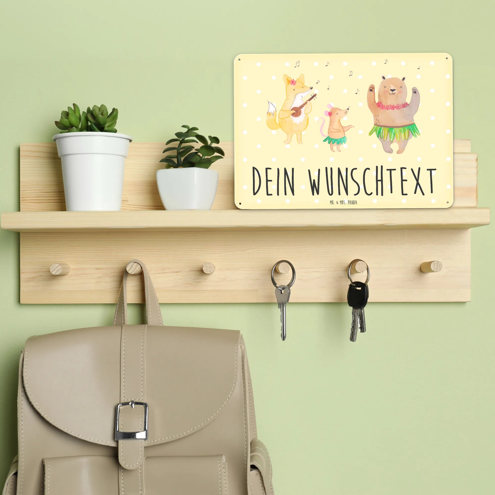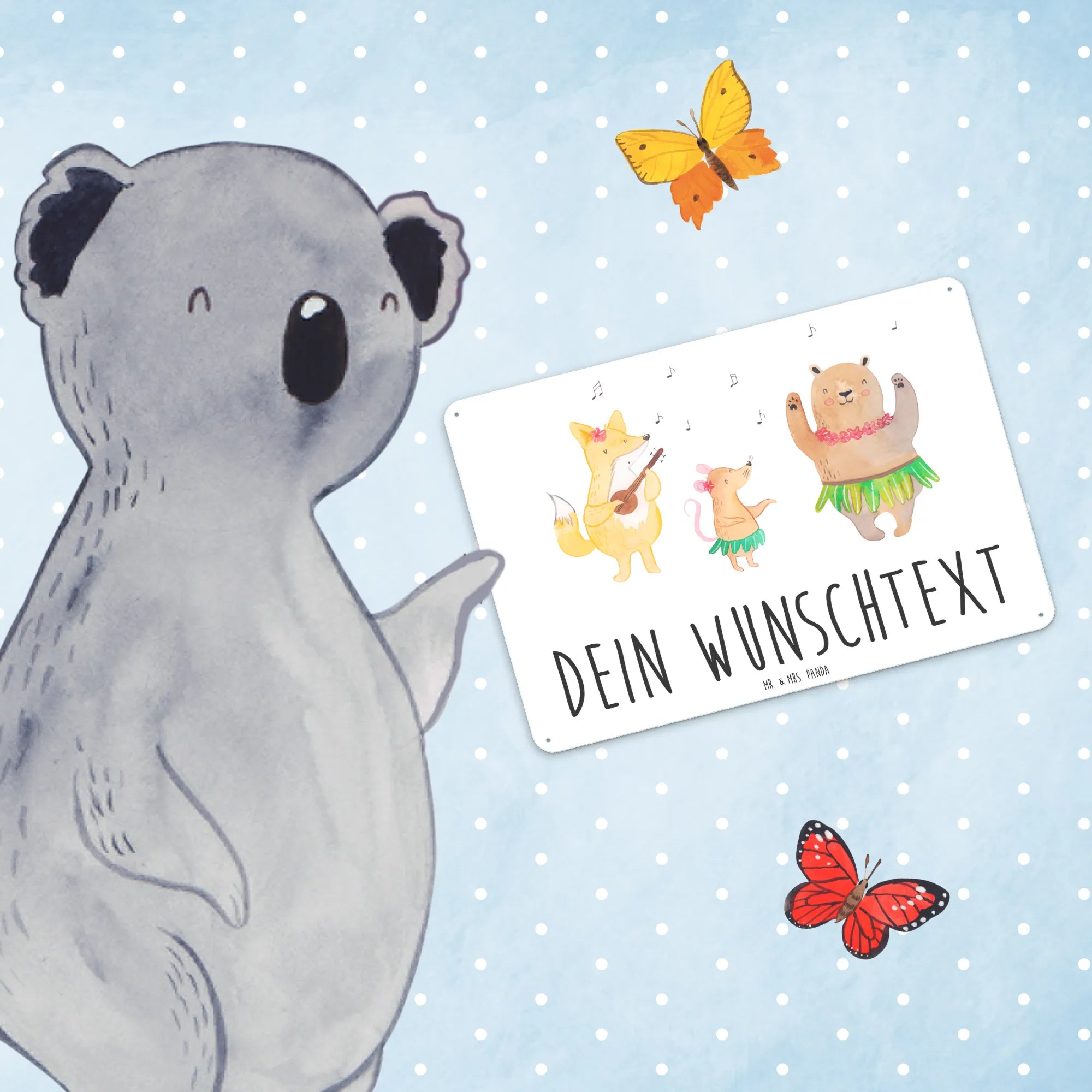 Das personalisierte Blechschild "Waldtiere Aloha" von Mr. & Mrs. Panda ist das perfekte Geschenk für alle, die die Natur und fröhliche Tiere lieben! 🌲 Mit dem zauberhaften Motiv von tanzenden Waldtieren in Hula-Röcken zaubert dieses Schild sofort ein Lächeln auf dein Gesicht und versetzt dich in Urlaubsstimmung! 🐻🐰✨
