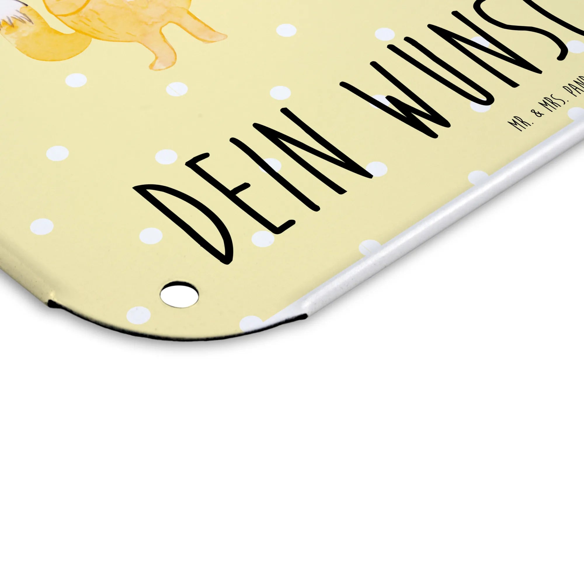 Das perfekte Wohnaccessoire: unser personalisiertes Blechschild von Mr. & Mrs. Panda! Hergestellt aus hochwertigem Stahlblech, misst es 70 mm x 148 mm x 105 mm und ist ideal als Wandschild oder zur Türdekoration. Du kannst deinen Wunschtext oder Namen eingravieren lassen und es zu einem einzigartigen Geschenk für jeden Anlass machen. Die seidenmatte Oberfläche sorgt dafür, dass das Schild edel aussieht und der langlebige Druck garantiert, dass die Farben strahlend bleiben. Mit vier Bohrungen kannst du es einfach befestigen und bei Bedarf leicht abwischen. Die abgerundeten Ecken und umgefalzten Kanten machen das Schild zu einem sicheren und stilvollen Element in deinem Zuhause.