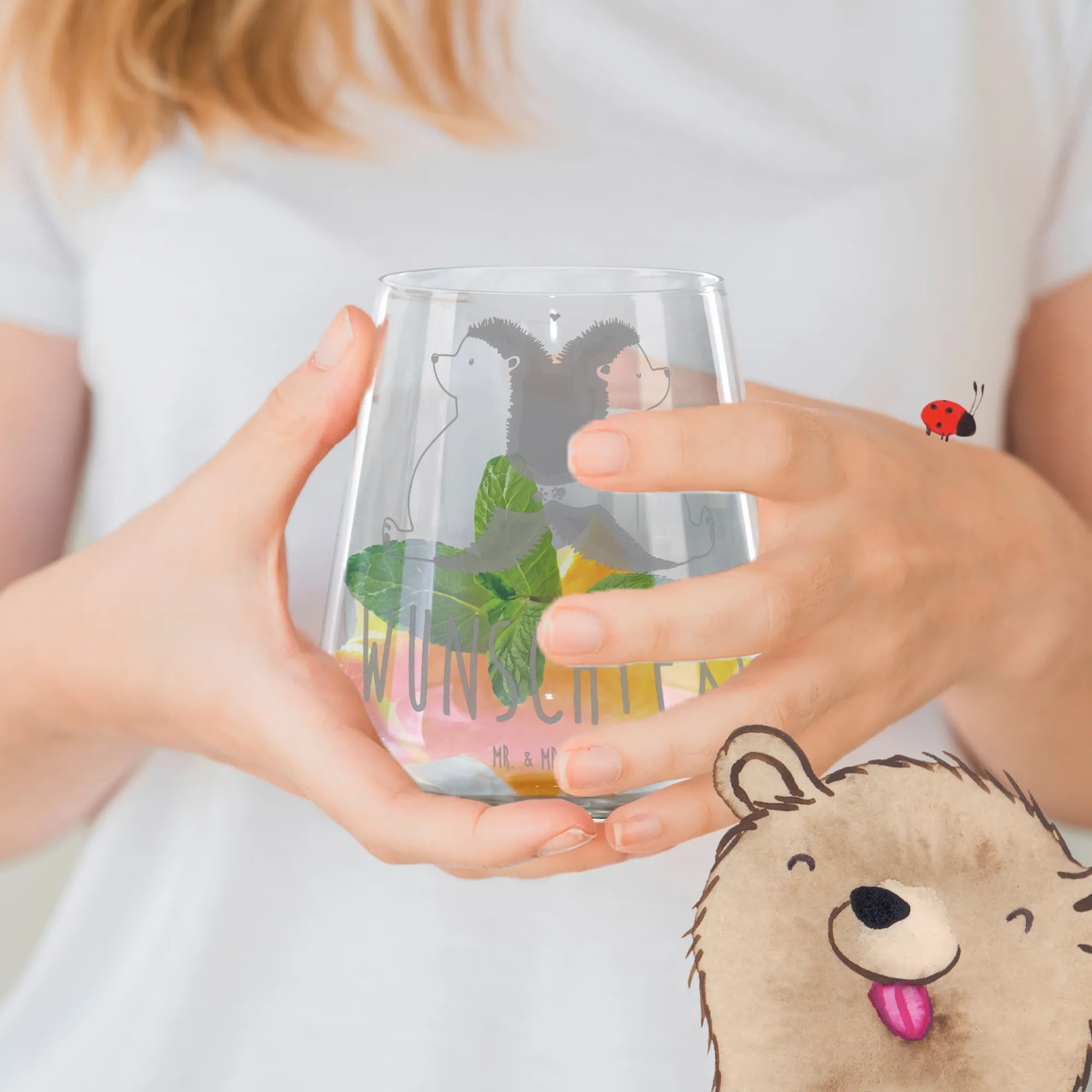 Mit einer Füllmenge von 400 ml ist es das ideale Glas für deine Lieblingscocktails, egal ob bei einem romantischen Dinner oder einem fröhlichen Cocktailabend mit Freunden. Die erstklassige Lasergravur verleiht jedem Glas einen eleganten Matteffekt, der edel und gleichzeitig niedlich ist. Unsere kleinen Igelchen sind ein süßes Symbol für die Liebe, die du mit deinem Lieblingsmenschen teilst.