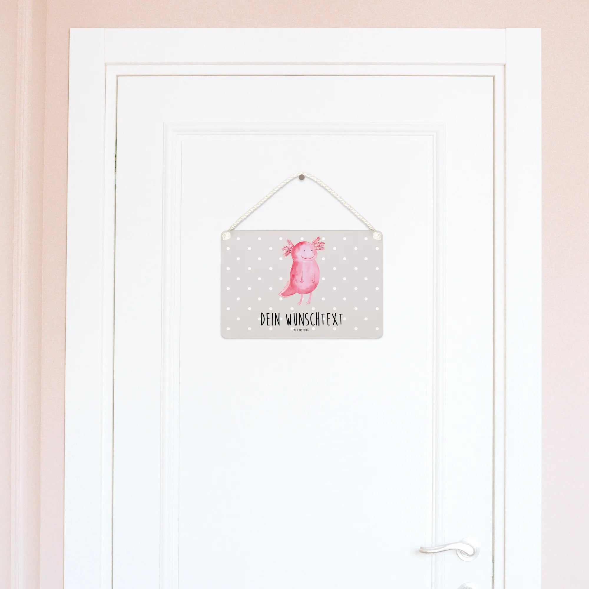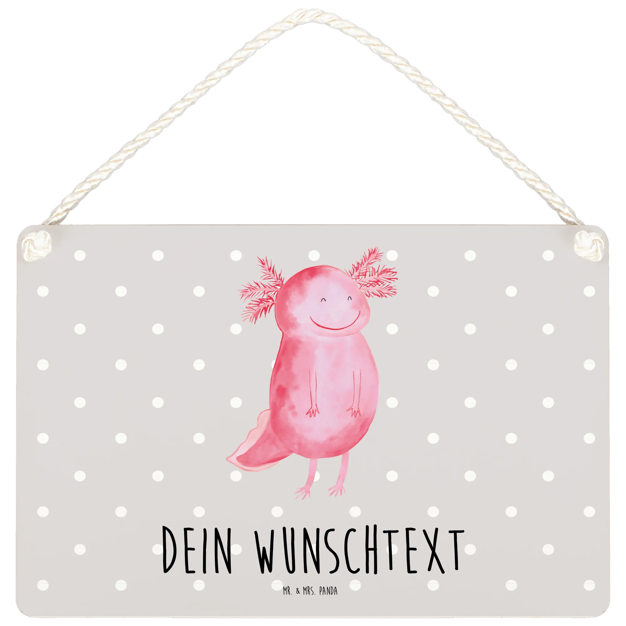 Personalisiertes Deko Schild Axolotl glücklich - DIN A6 - Grau Pastell