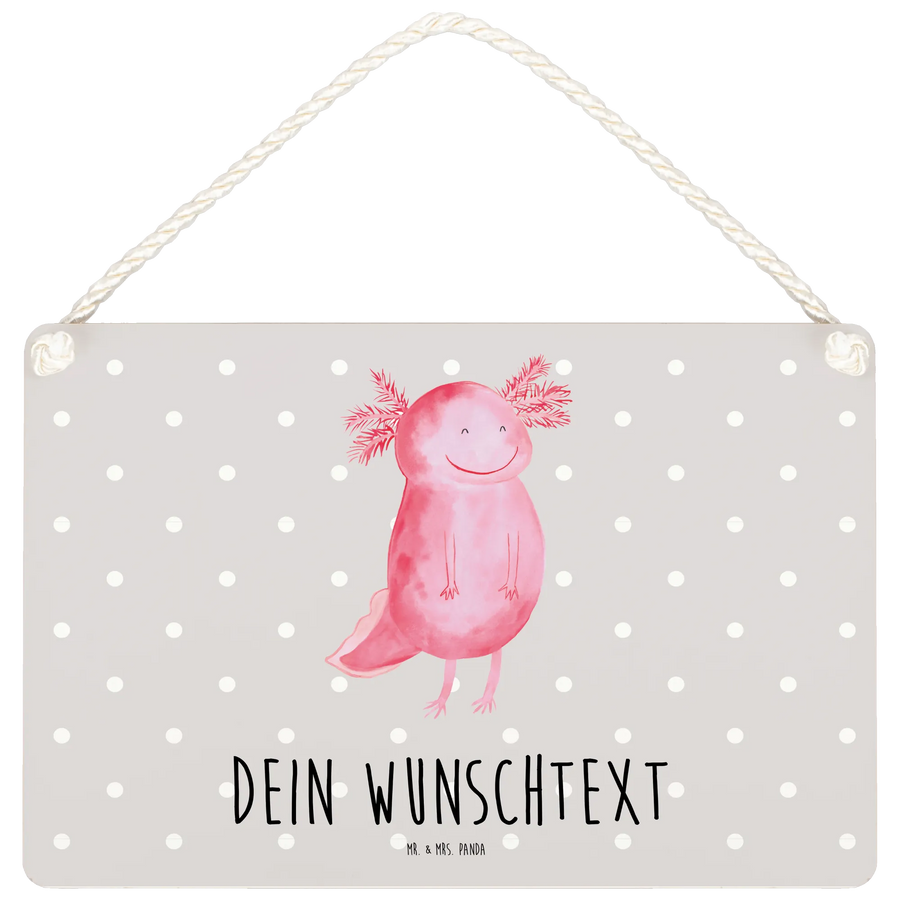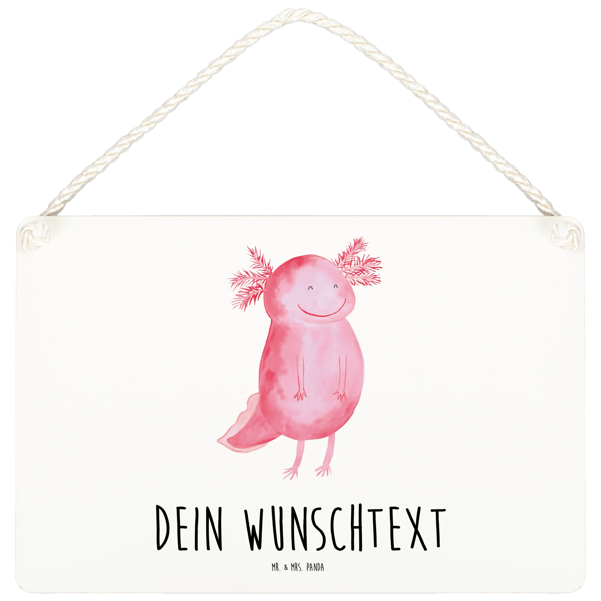 Wenn du auf der Suche nach einem einzigartigen Geschenk bist, das Freude und gute Laune verbreitet, dann ist das personalisierte Deko Schild "Axolotl glücklich" aus der Axolotl-Kollektion von Mr. & Mrs. Panda genau das Richtige für dich!