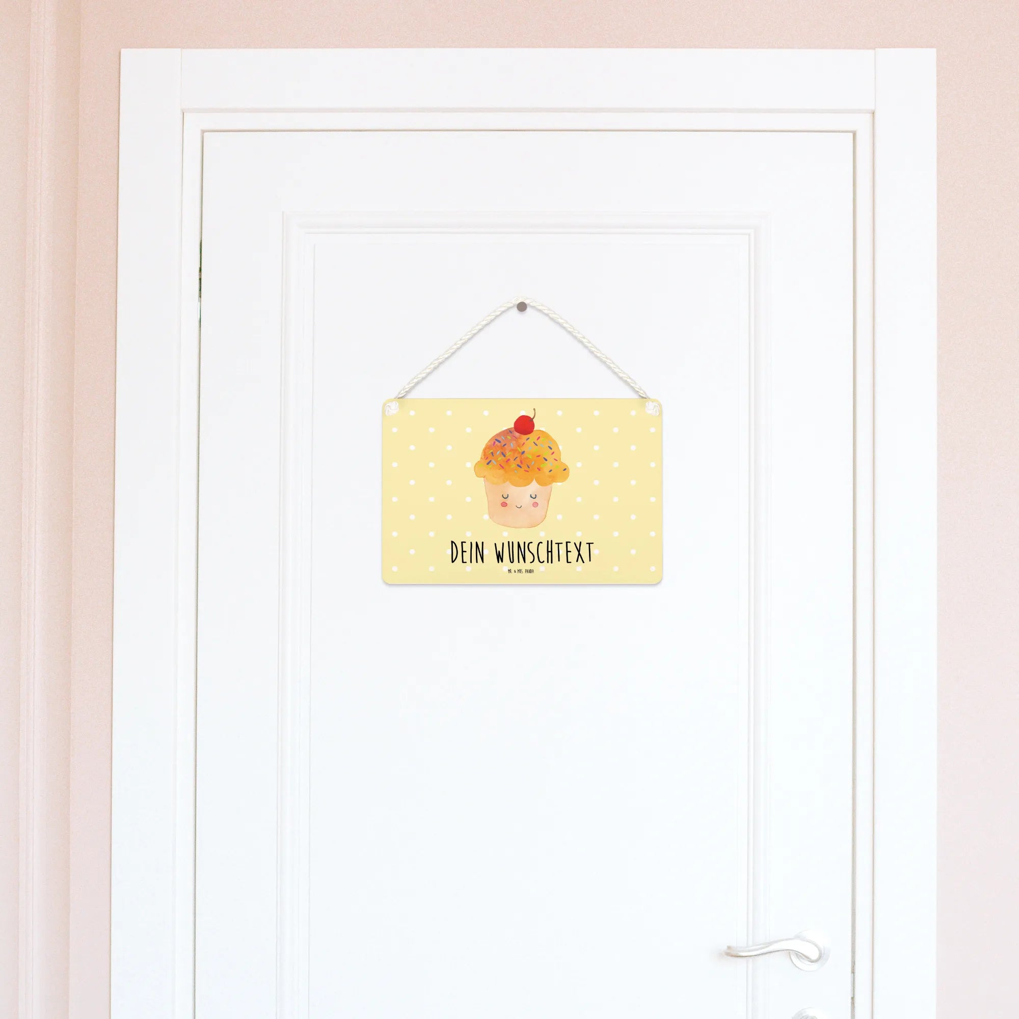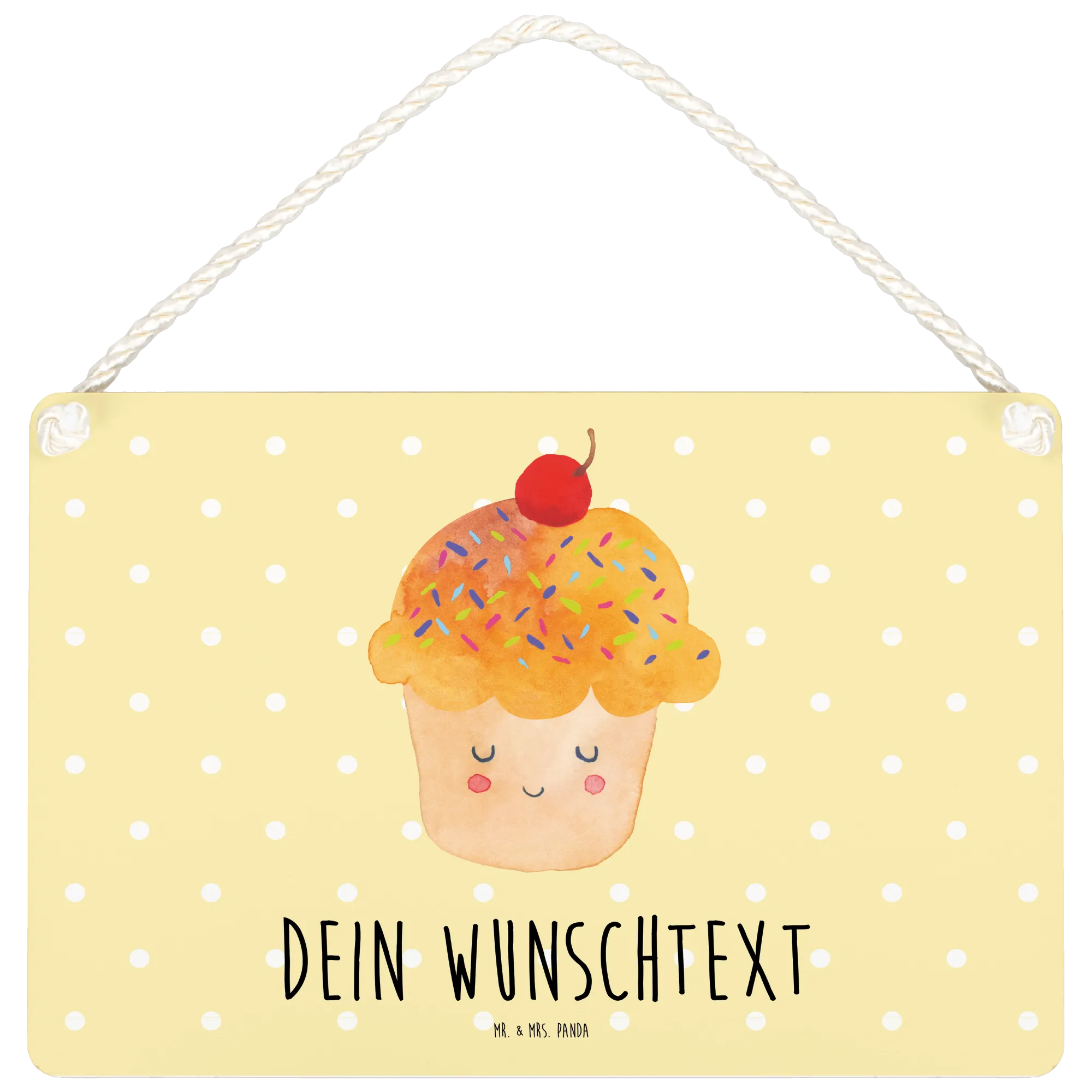 Das personalisierte Deko Schild mit dem süßen Cupcake-Motiv von Mr. & Mrs. Panda ist das perfekte Geschenk für alle, die die süße Versuchung des Backens lieben. Mit dem liebevoll handgezeichneten Cupcake, der lächelnd und voll geschmückt mit bunten Streuseln daherkommt, zaubert dieses Schild jedem ein Lächeln ins Gesicht.
