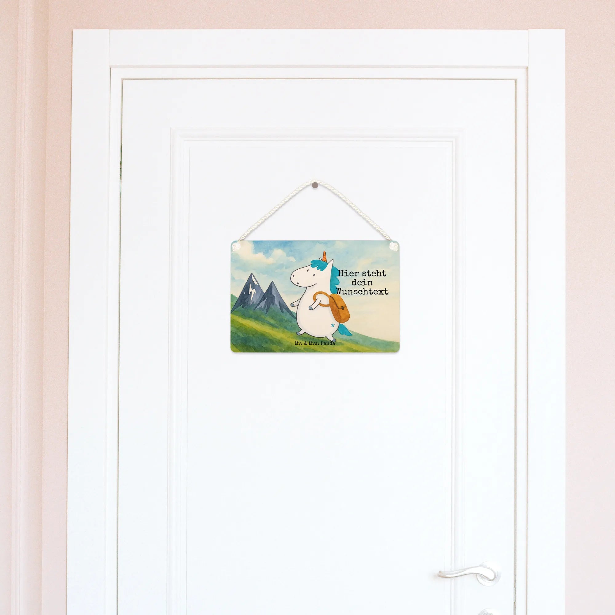 Personalisiertes Deko Schild Einhorn Bergsteiger Design - DIN A6