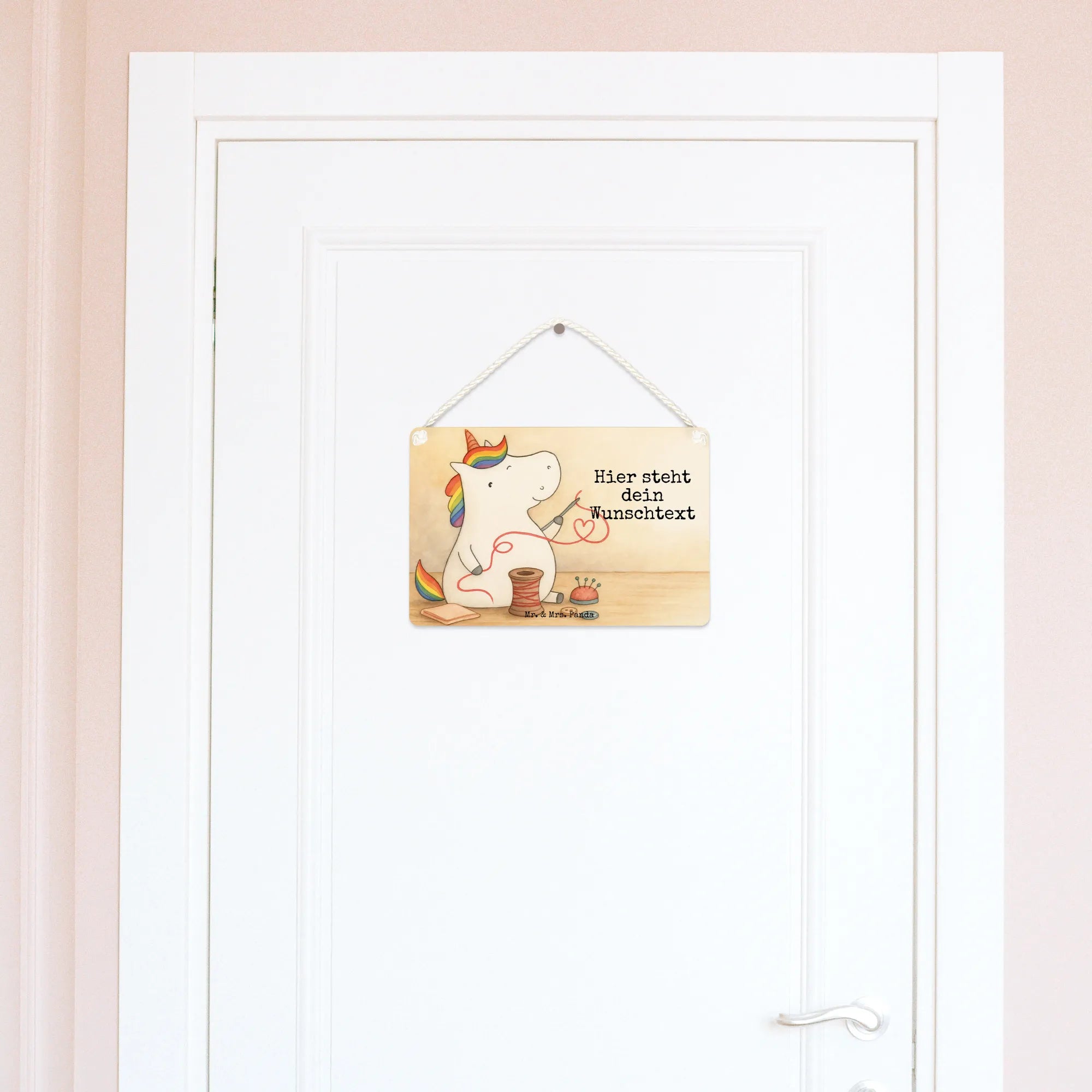 Personalisiertes Deko Schild Einhorn Näherin Design - DIN A6