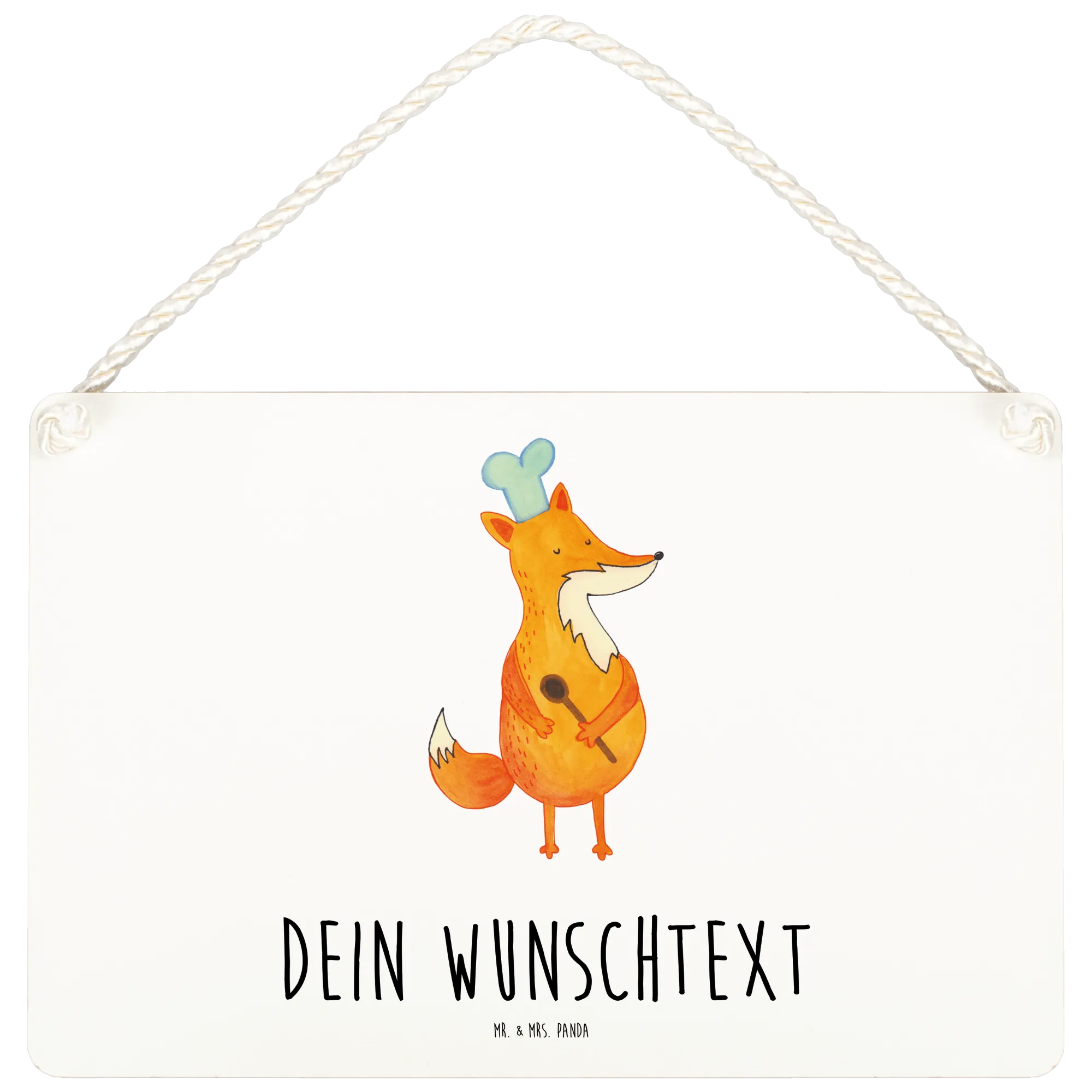 Personalisiertes Deko Schild Fuchs Koch - DIN A6 - Weiß