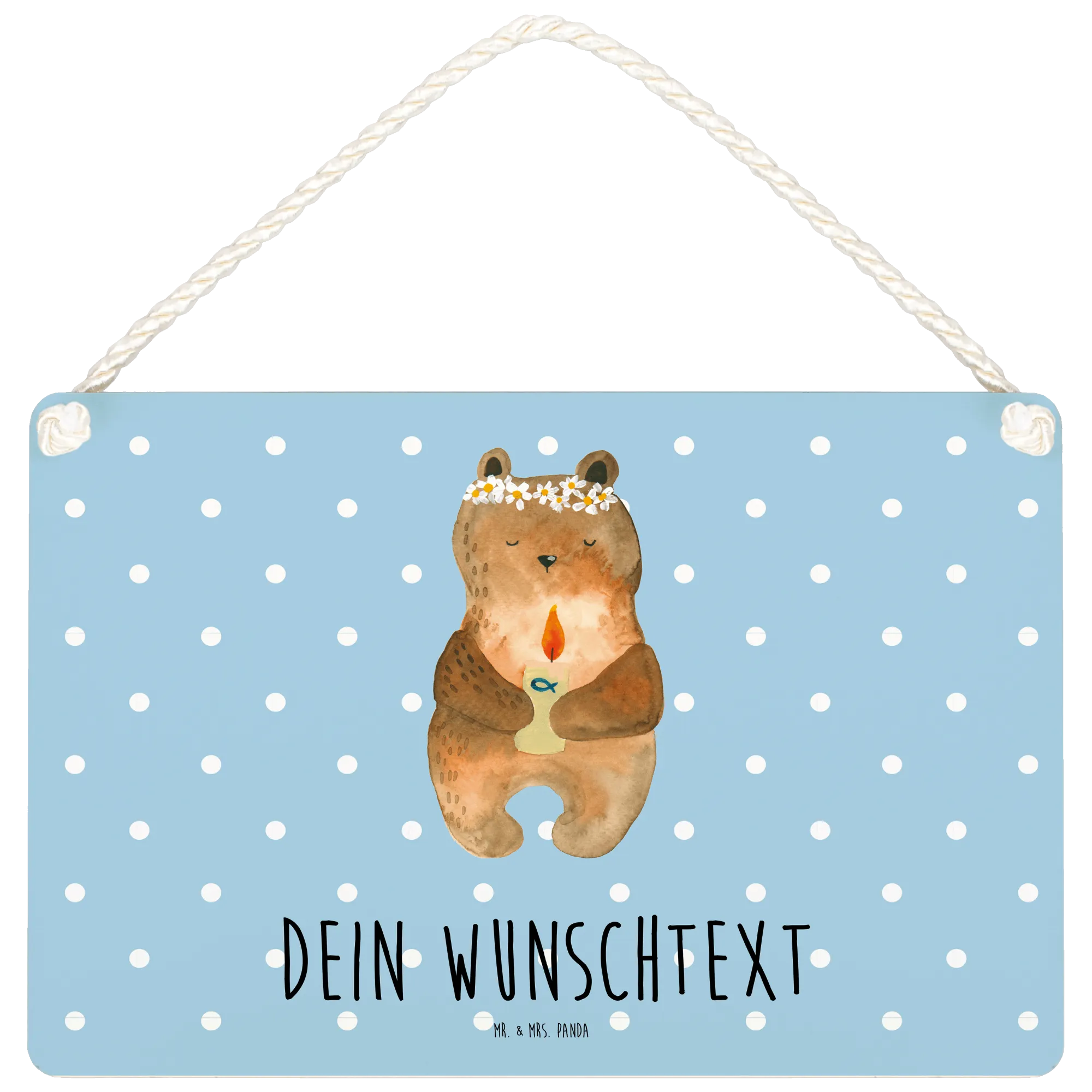 Das personalisierte Deko Schild Kommunion-Bär von Mr. & Mrs. Panda ist das perfekte Geschenk zur Kommunion!