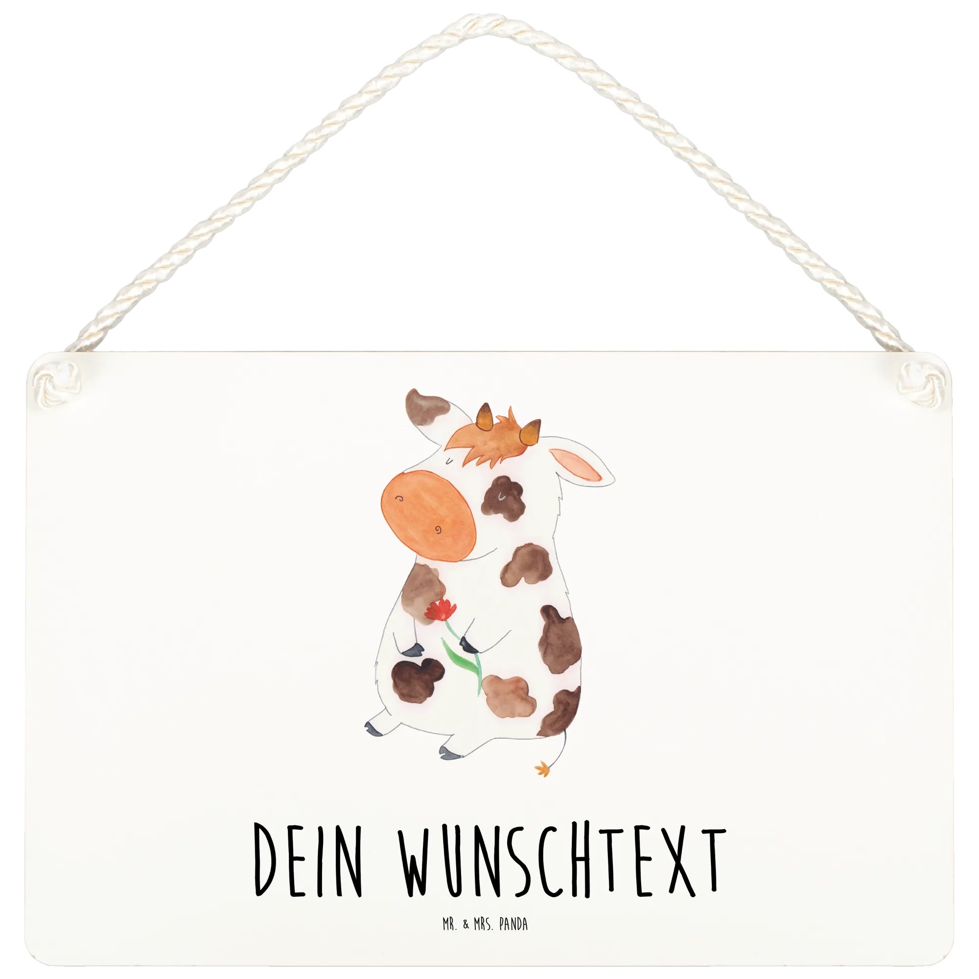 Die kleine, verträumte Kuh, stolz als Teil unserer "Mr. & Mrs. Panda"-Familie, bringt einen Hauch von Landhausstil in dein Zuhause. Dieses wunderschöne Deko Schild eignet sich hervorragend als Wanddeko oder als Türschild und verleiht deiner Einrichtung den besonderen Charme.