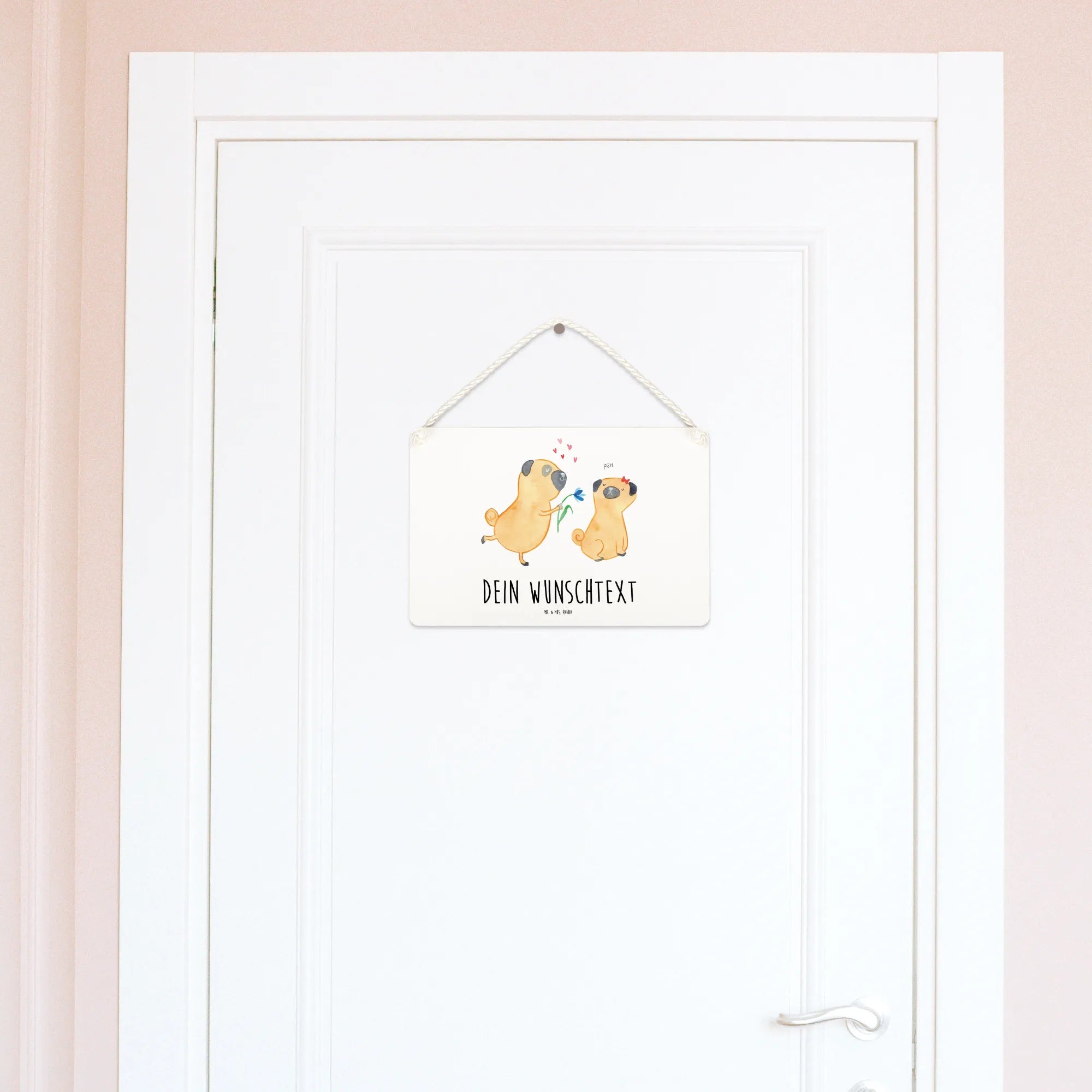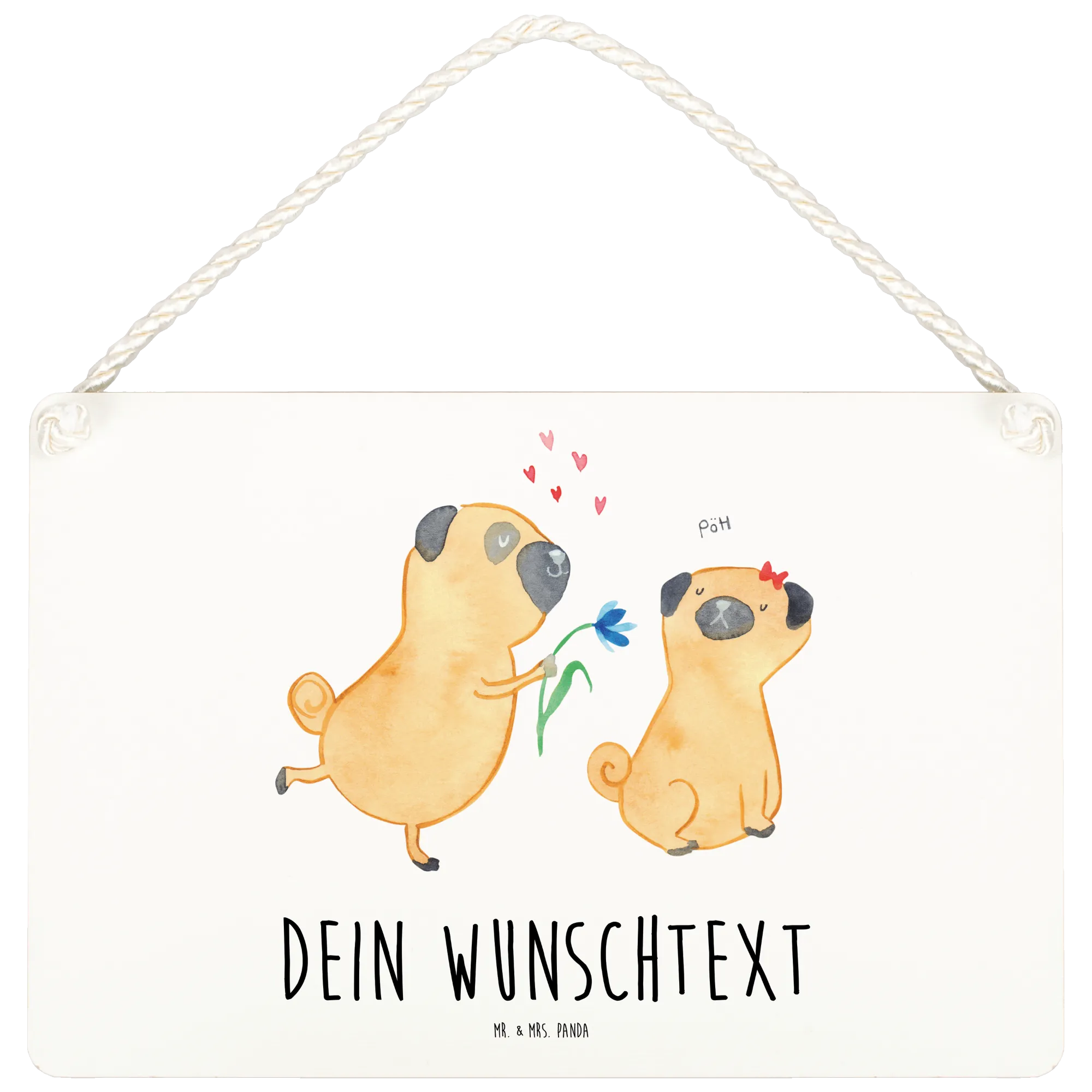 Personalisiertes Deko Schild Mops Verliebt - DIN A6 - Weiß