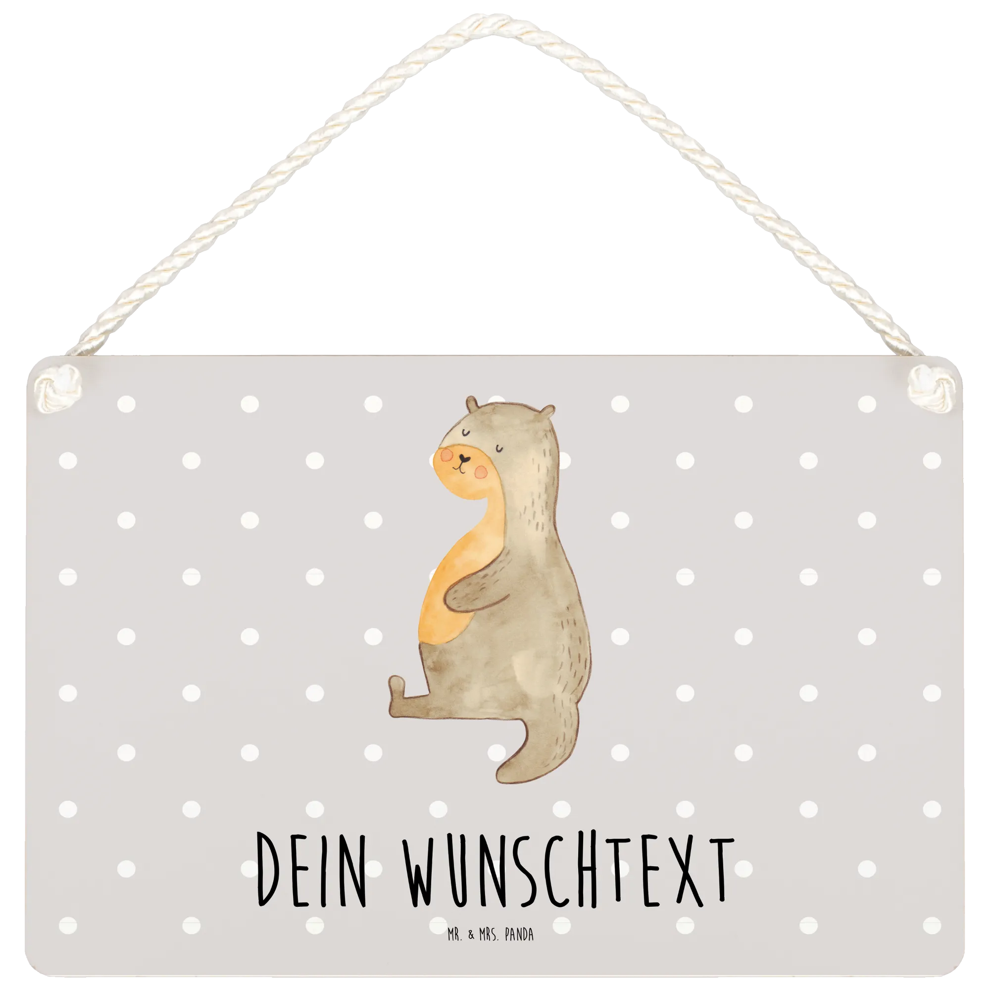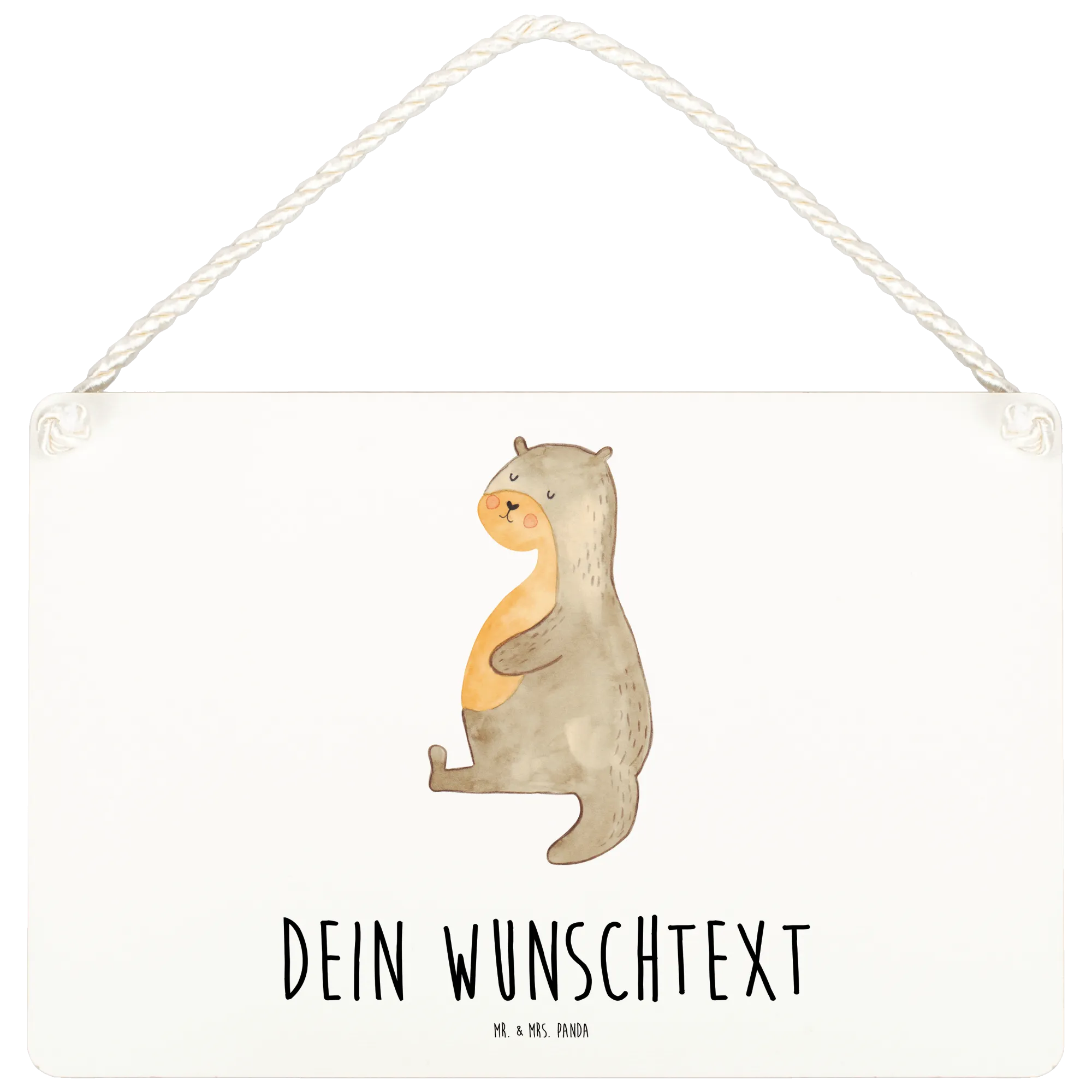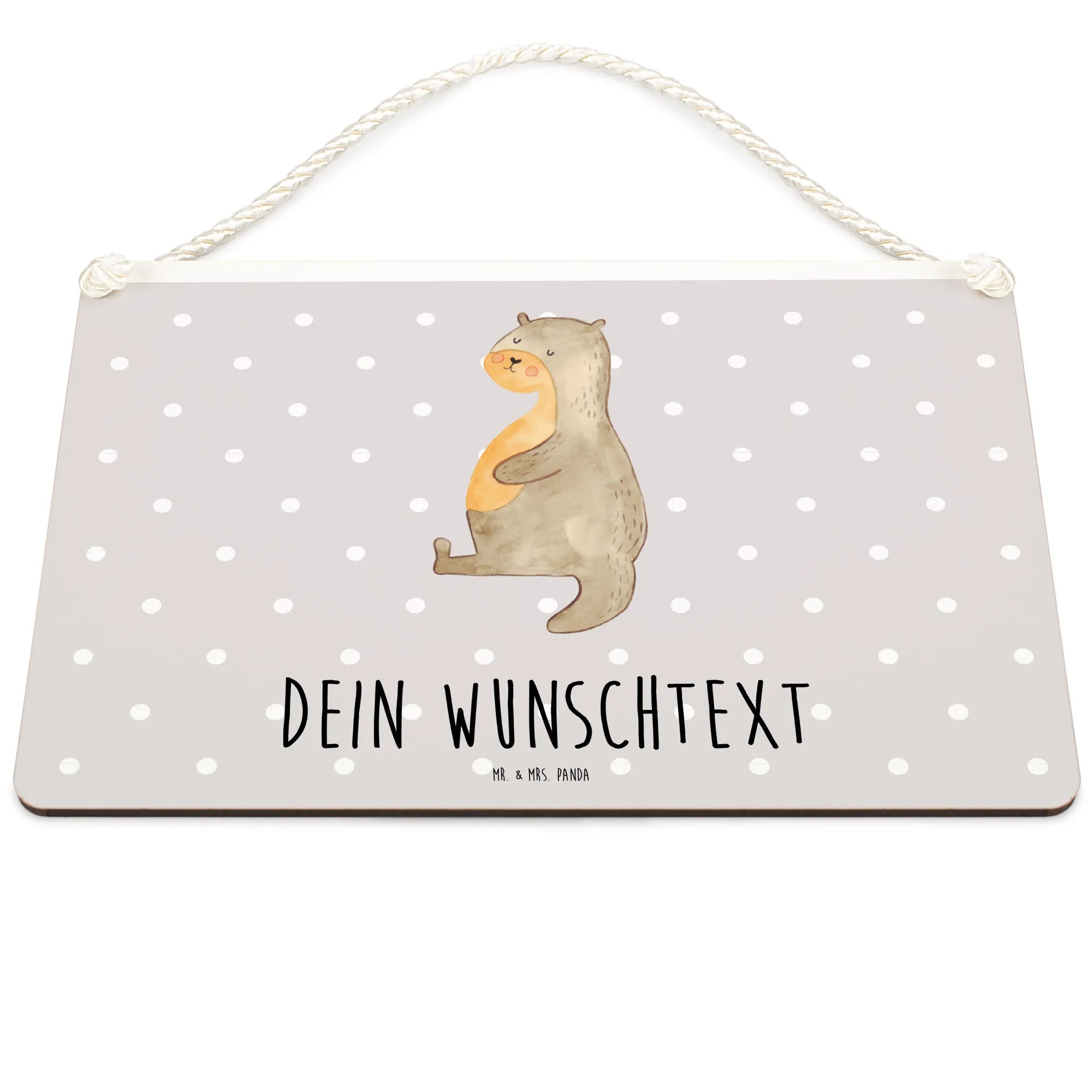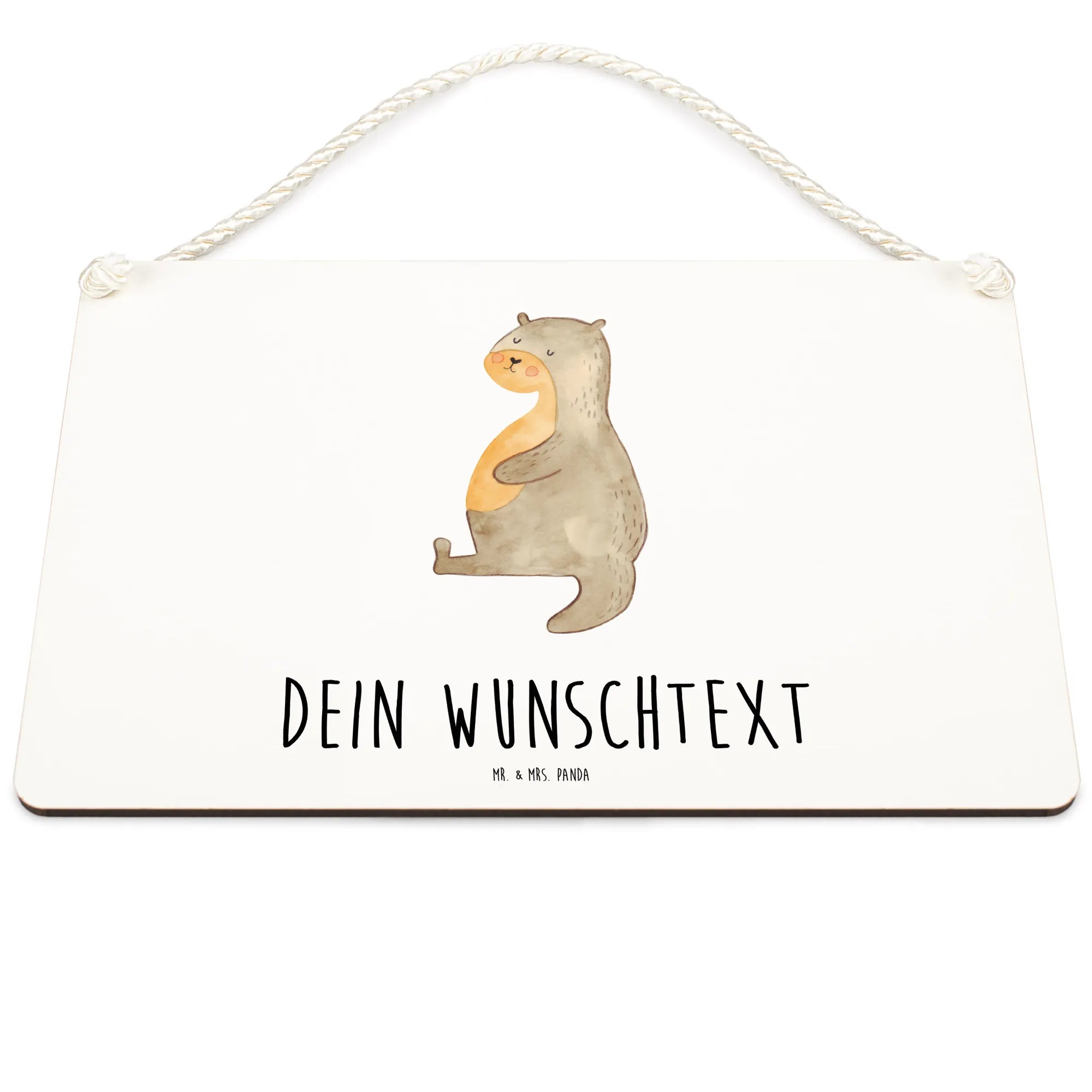 Das personalisierte Deko Schild mit dem süßen Motiv des Otters aus der Otter Kollektion von Mr. & Mrs. Panda ist genau das richtige Geschenk für alle, die es lieben, ihr Zuhause mit charmanten Dekorationen zu verschönern.