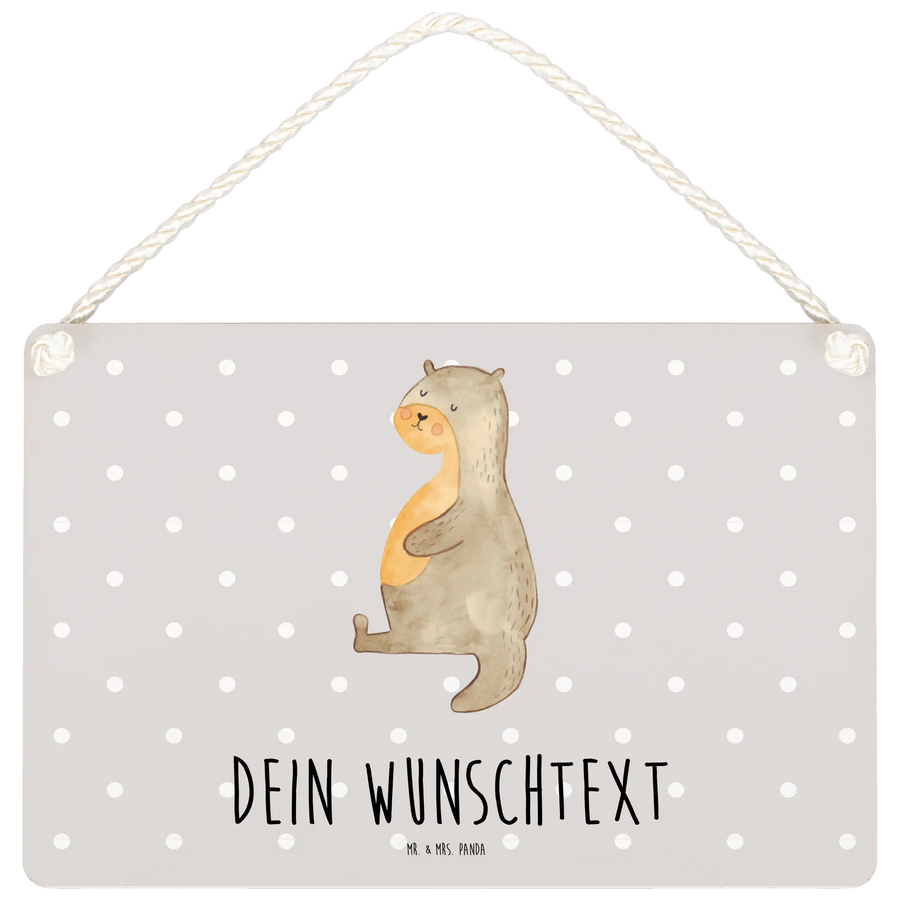 Personalisiertes Deko Schild Otter Bauch - DIN A6 - Grau Pastell