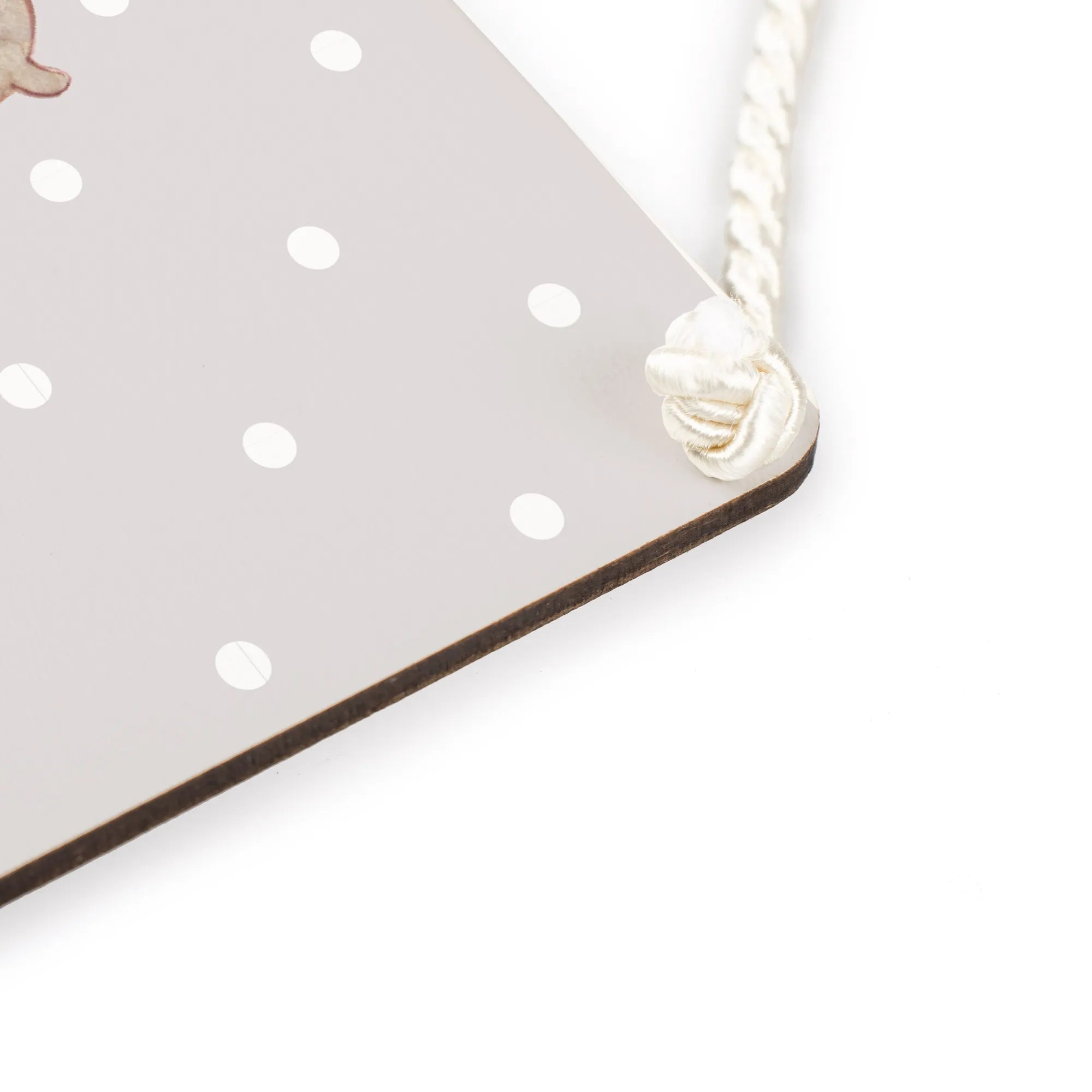 Ein wunderschönes und edles personalisiertes Deko Schild von Mr. & Mrs. Panda ist die perfekte Ergänzung für jedes Zuhause. Dieses Schild wird mit liebevollen Sprüchen und süßen Motiven gestaltet, die nicht nur zum Schmunzeln anregen, sondern auch für eine individuelle Note sorgen. Es lässt sich ganz nach deinen Wünschen personalisieren, sei es mit einem Namen oder eigenen Worten. Mit den Maßen von 210 mm x 297 mm ist es also praktisch und ein echter Hingucker. Gefertigt aus hochwertiger beschichteter Holzfaser, bietet es nicht nur eine langlebige Qualität, sondern auch eine edle Optik. Die Oberfläche ist speziell beschichtet, um für eine lange Lebensdauer zu sorgen. Egal, ob du es an der Tür oder an der Wand anbringst, dieses Schild kann vielseitig eingesetzt werden – als Dekoration oder als Wegweiser. Der Hingucker ist die schöne, gedrehte Kordel, die im Lieferumfang enthalten ist, um das Aufhängen zu erleichtern.