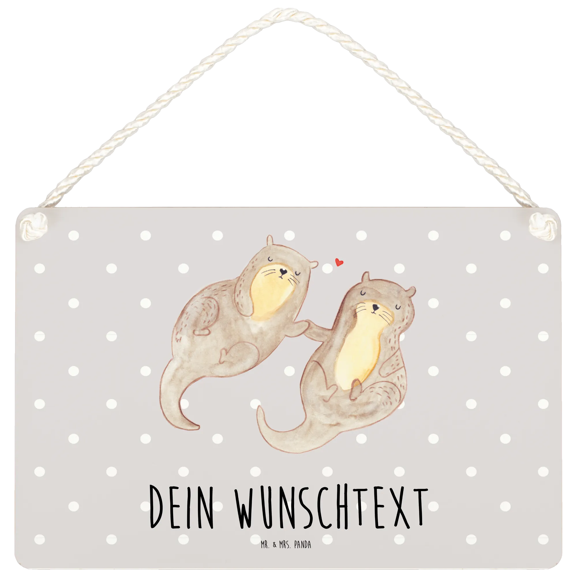 Entdecke unser personalisiertes Deko Schild mit dem bezaubernden Motiv von händchenhaltenden Ottern. Dieses Schild bringt nicht nur Freude, sondern ist auch ein liebevolles Geschenk für besondere Menschen in deinem Leben.