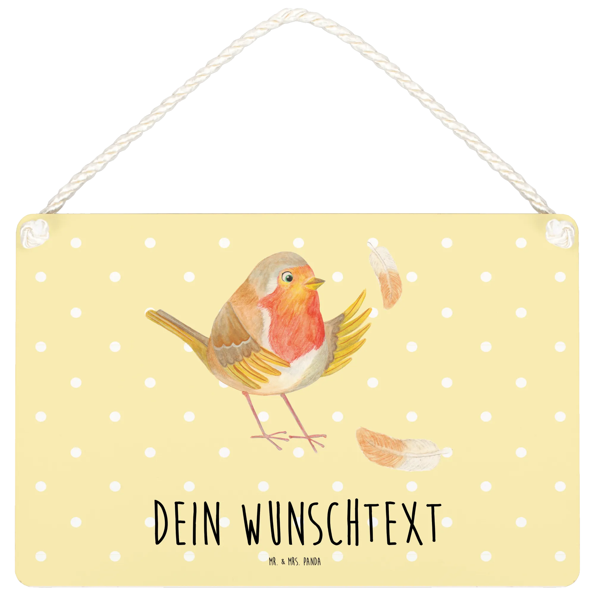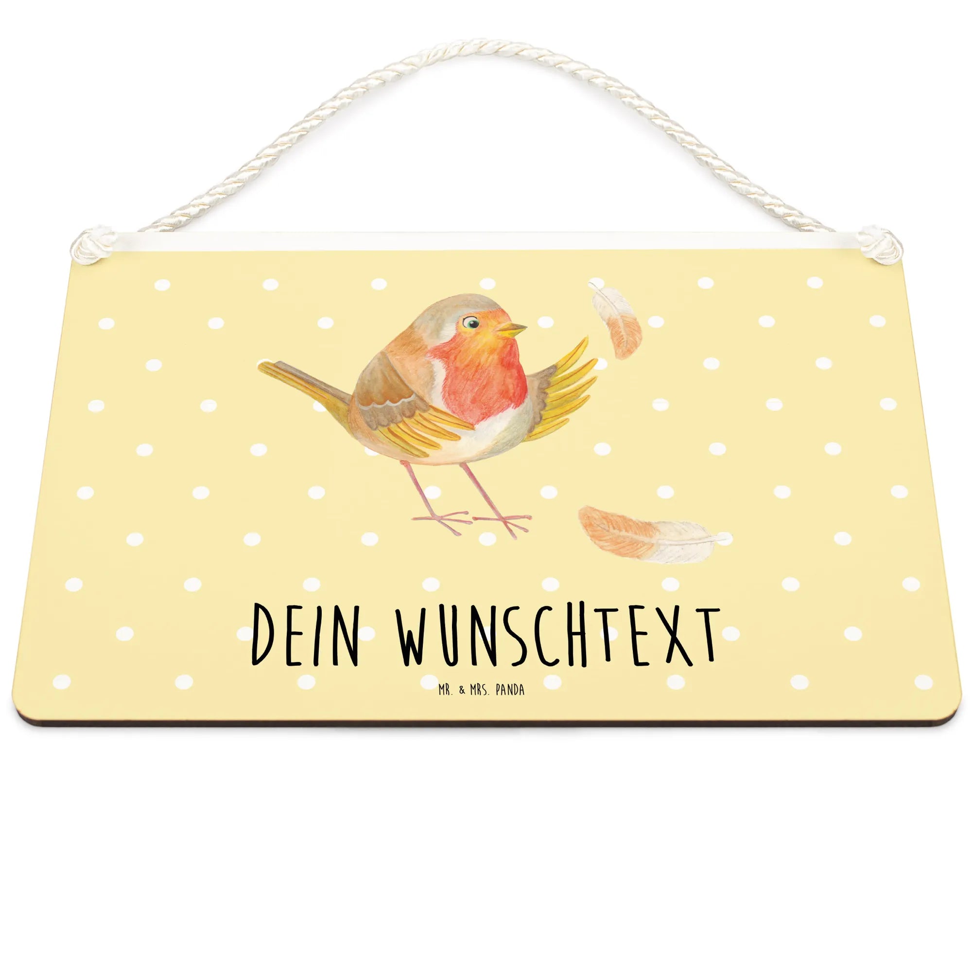 Das personalisierte Deko Schild "Rotkehlchen mit Federn" von Mr. & Mrs. Panda ist das perfekte Geschenk für alle, die Freude und Motivation in ihr Zuhause bringen möchten. Egal, ob für dich selbst oder als liebevolles Präsent für einen Freund - dieses Schild wird Herzen höher schlagen lassen!