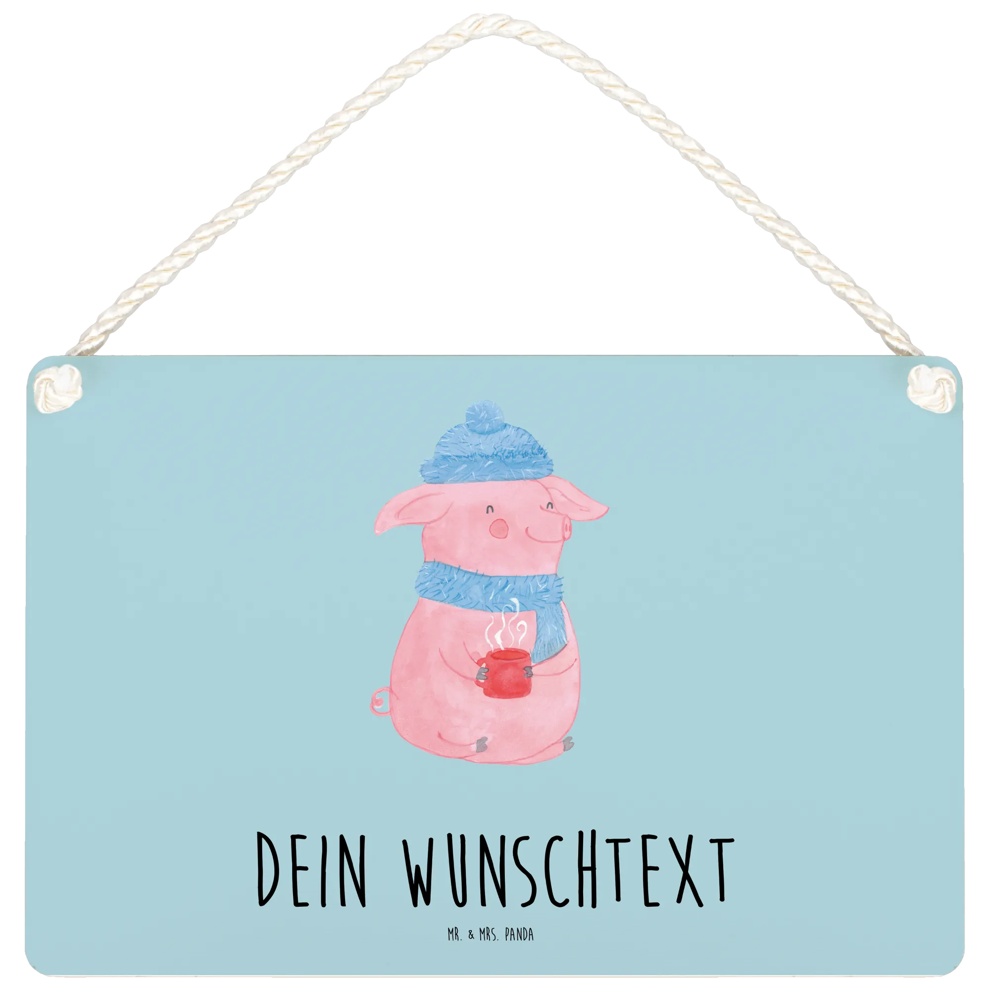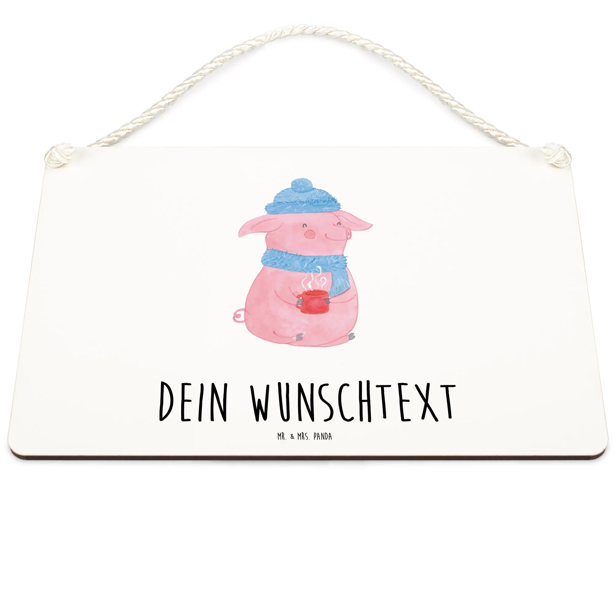 Das personalisierte Deko Schild Glühschwein aus der Winter Kollektion von Mr. & Mrs. Panda ist das perfekte Geschenk für alle Glühweinliebhaber und Freunde der winterlichen Gemütlichkeit. Mit dem fröhlichen Motiv des Glühschweins, das mit seiner roten Tasse dampfenden Glühwein genießt, bringt dieses Schild sofort gute Laune in jedes Zuhause. Die Ausstrahlung des Schweins, das warme Winterkleidung trägt, zaubert ein Lächeln auf jedes Gesicht und erinnert an die schönen Momente auf dem Weihnachtsmarkt oder beim Punsch zu Hause.