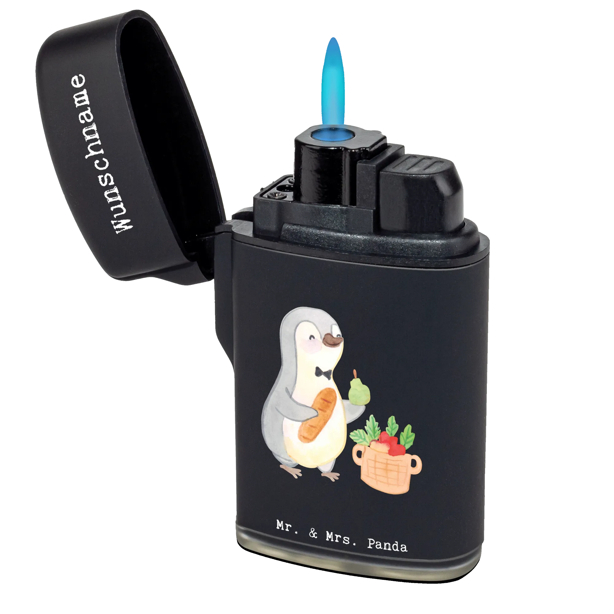 Das personalisierte Feuerzeug "Obsthändler mit Herz" von Mr. & Mrs. Panda ist das perfekte Geschenk für Obstverkäufer, Wochenmarkthändler oder Obstbauer. Es ist nicht nur funktional, sondern auch ein echtes Schmuckstück, das die Leidenschaft für den Beruf widerspiegelt. Mit einem süßen Pinguin-Motiv, der frisches Obst anpreist, und dem Spruch "Du bist nur ein halber Mensch, wenn du kein Obsthändler bist", zaubert es jedem ein Lächeln ins Gesicht.