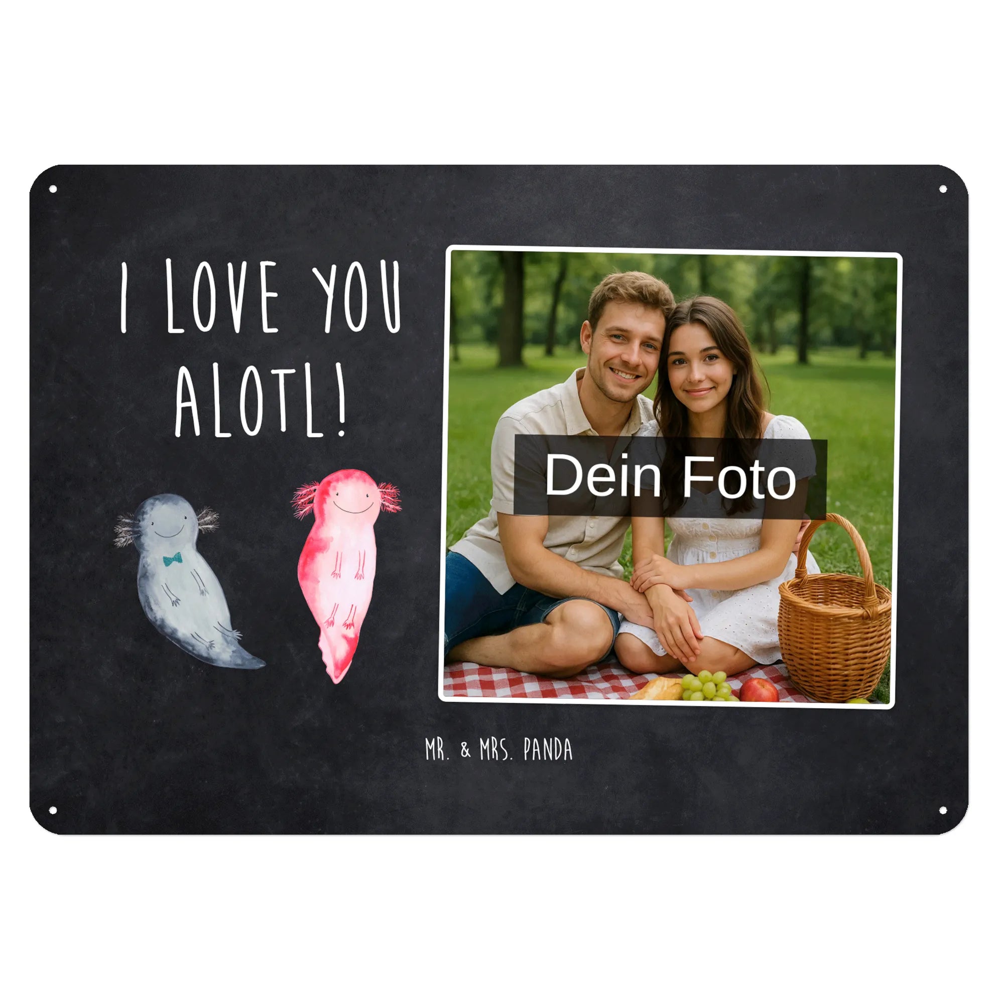 Personalisiertes Foto Blechschild Axolotl Liebe - DIN A6 - Grau Pastell