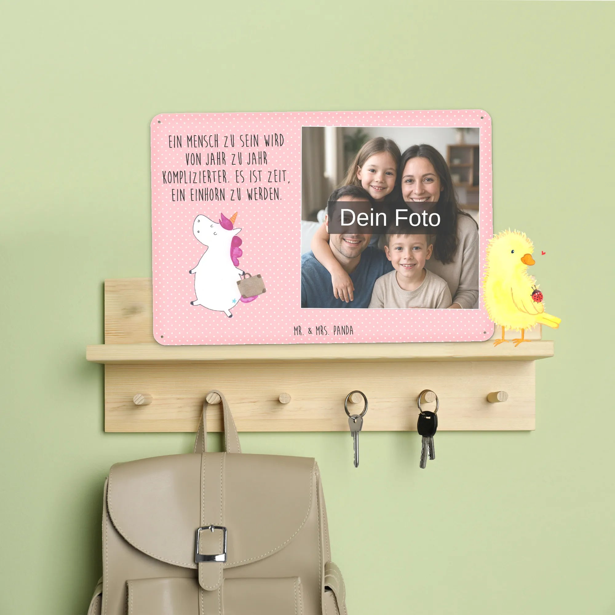 Personalisiertes Foto Blechschild Einhorn Koffer - DIN A6