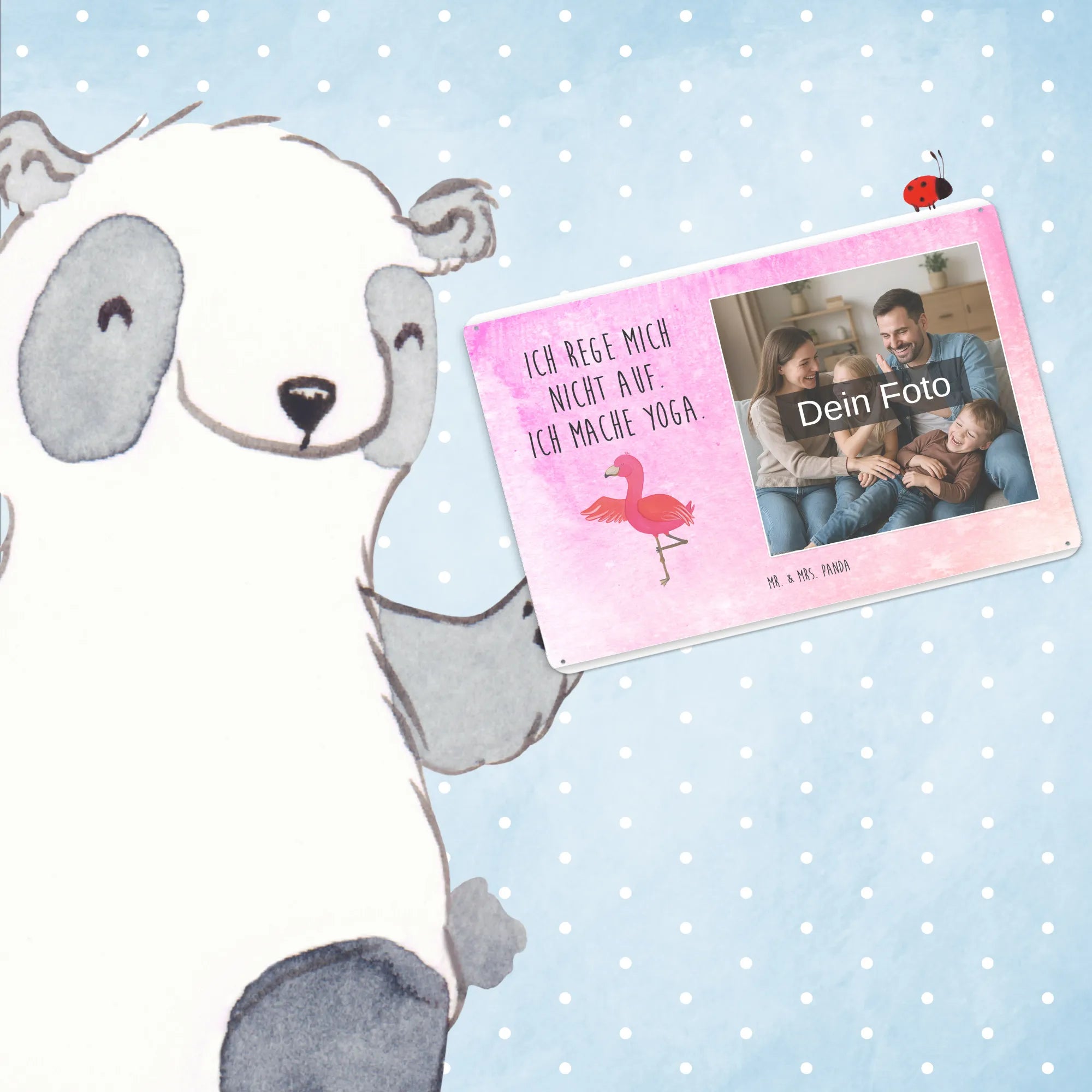 Mr. & Mrs. Panda – Personalisiertes Foto Blechschild Flamingo Yoga