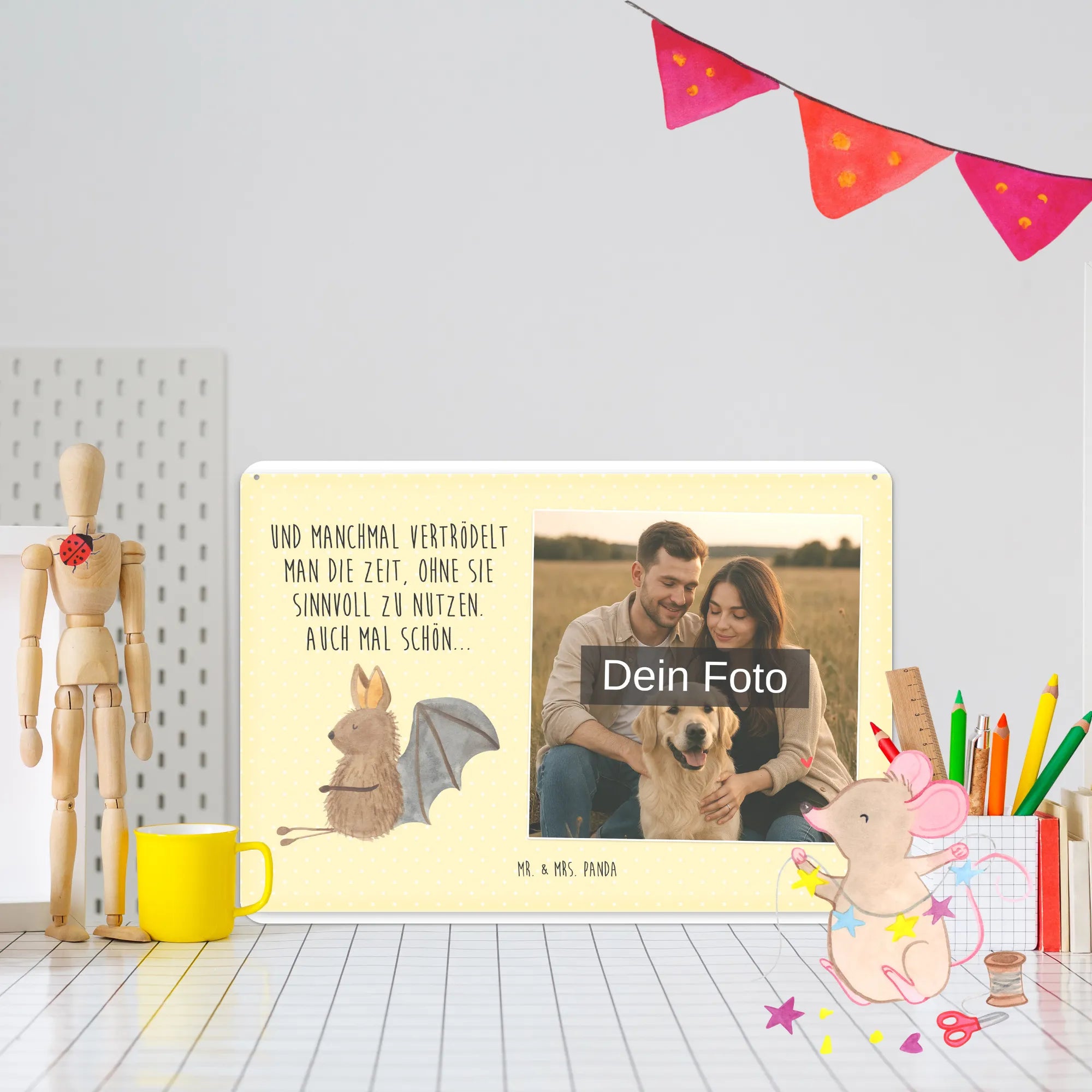 Gestalte jetzt dein einzigartiges Blechschild mit Foto von Mr. & Mrs. Panda – persönlich, edel und sofort zum Aufhängen!