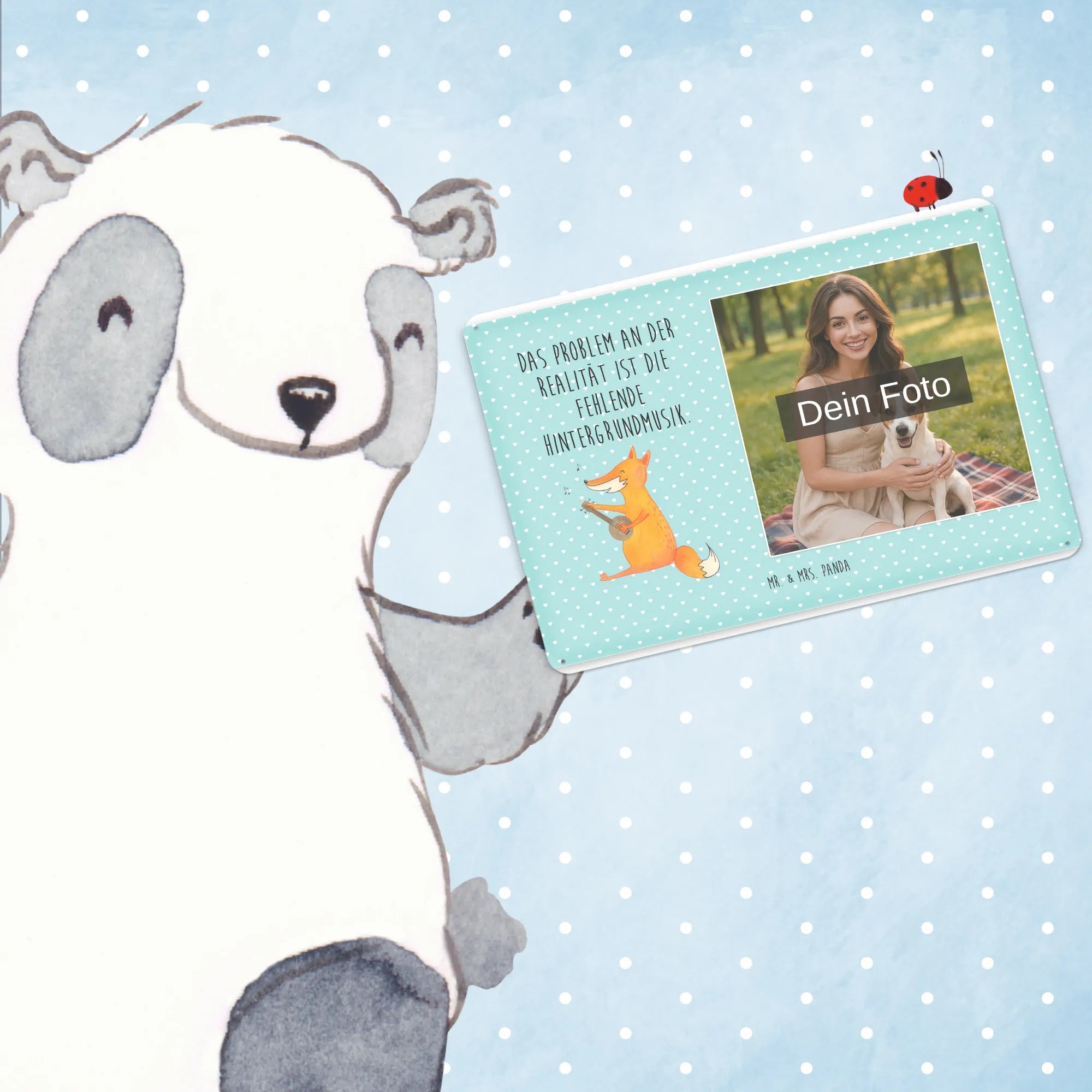 Jetzt personalisieren: Gestalte dein individuelles Foto Blechschild von Mr. & Mrs. Panda und verschenke Freude — einfach Foto hochladen & bestellen!