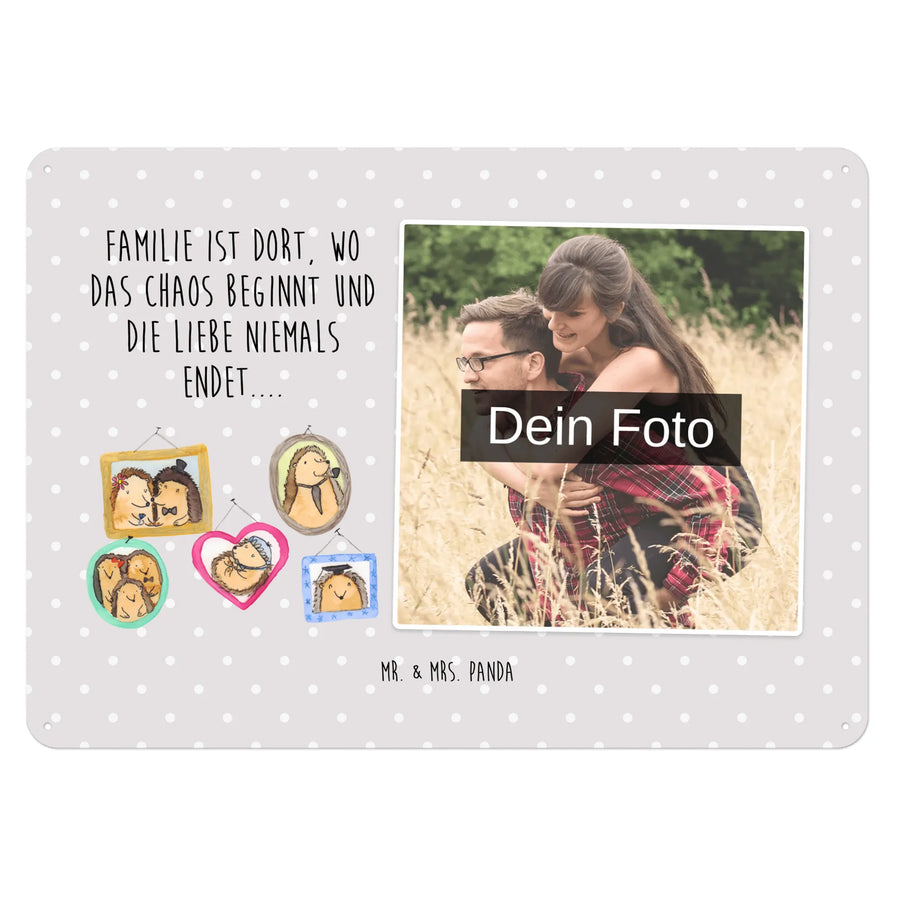 Personalisiertes Foto Blechschild Igel Familie - DIN A6 - Grau Pastell