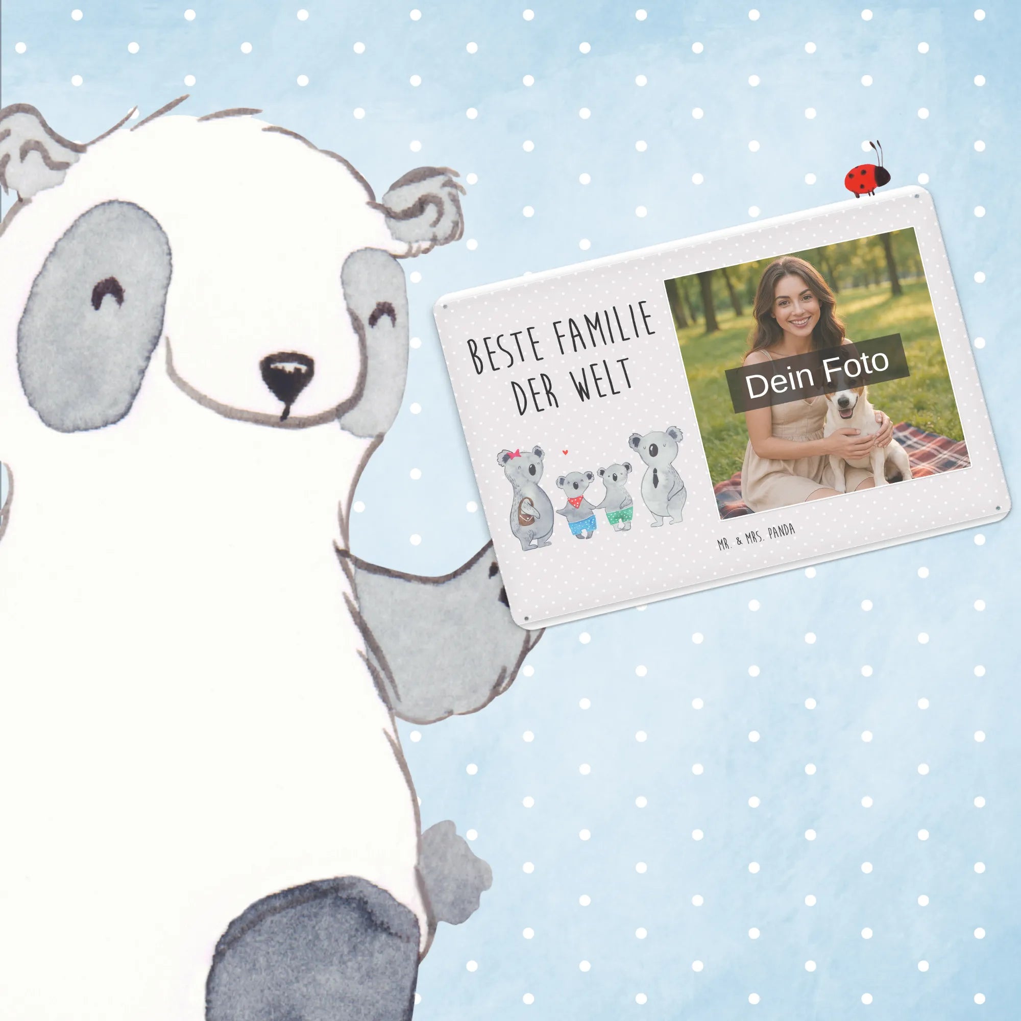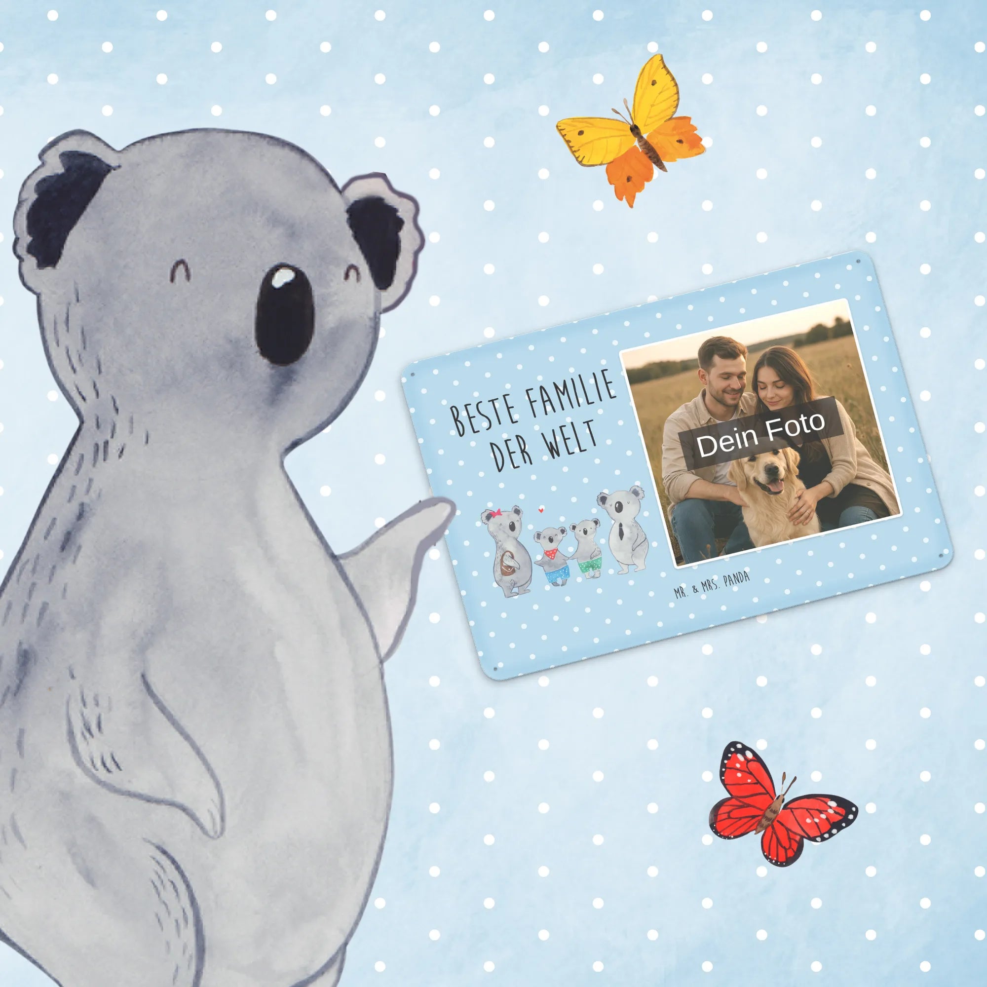 Mr. & Mrs. Panda – Personalisiertes Foto-Blechschild „Koala Familie zwei“