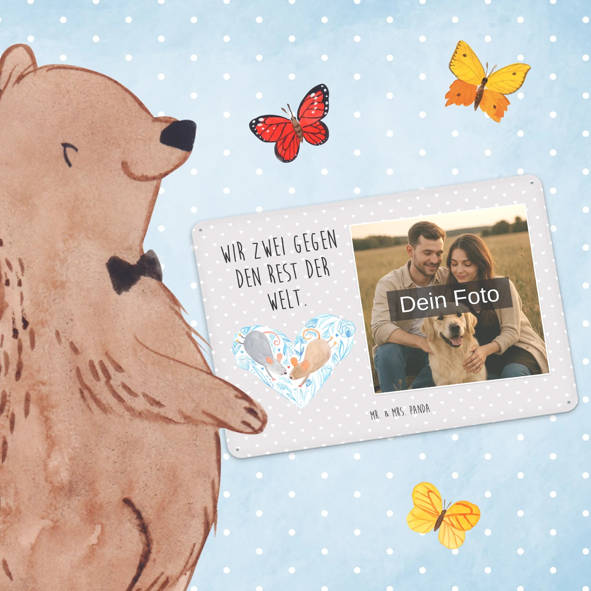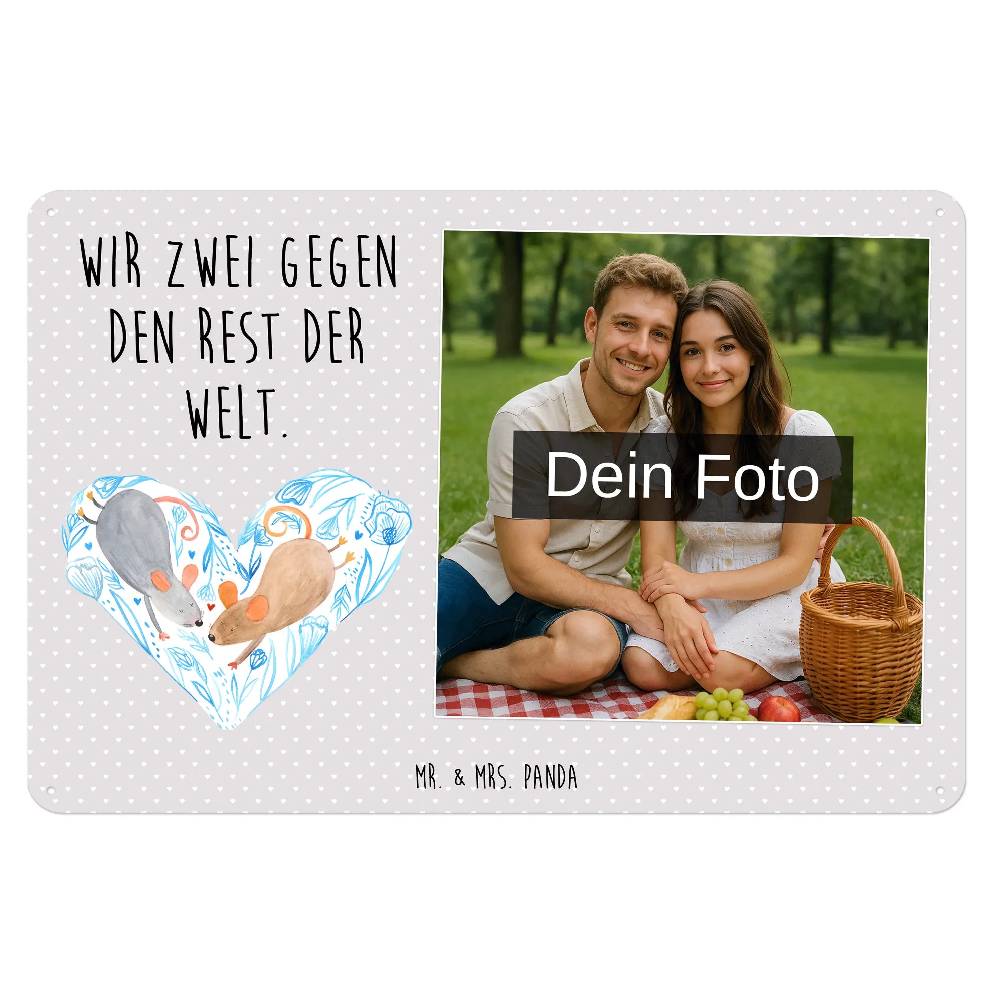Schenke Persönlichkeit: Erstelle jetzt dein personalisierbares Blechschild Foto mit Mr. & Mrs. Panda – Foto hochladen, Text hinzufügen, bestellen und Freude verschenken.