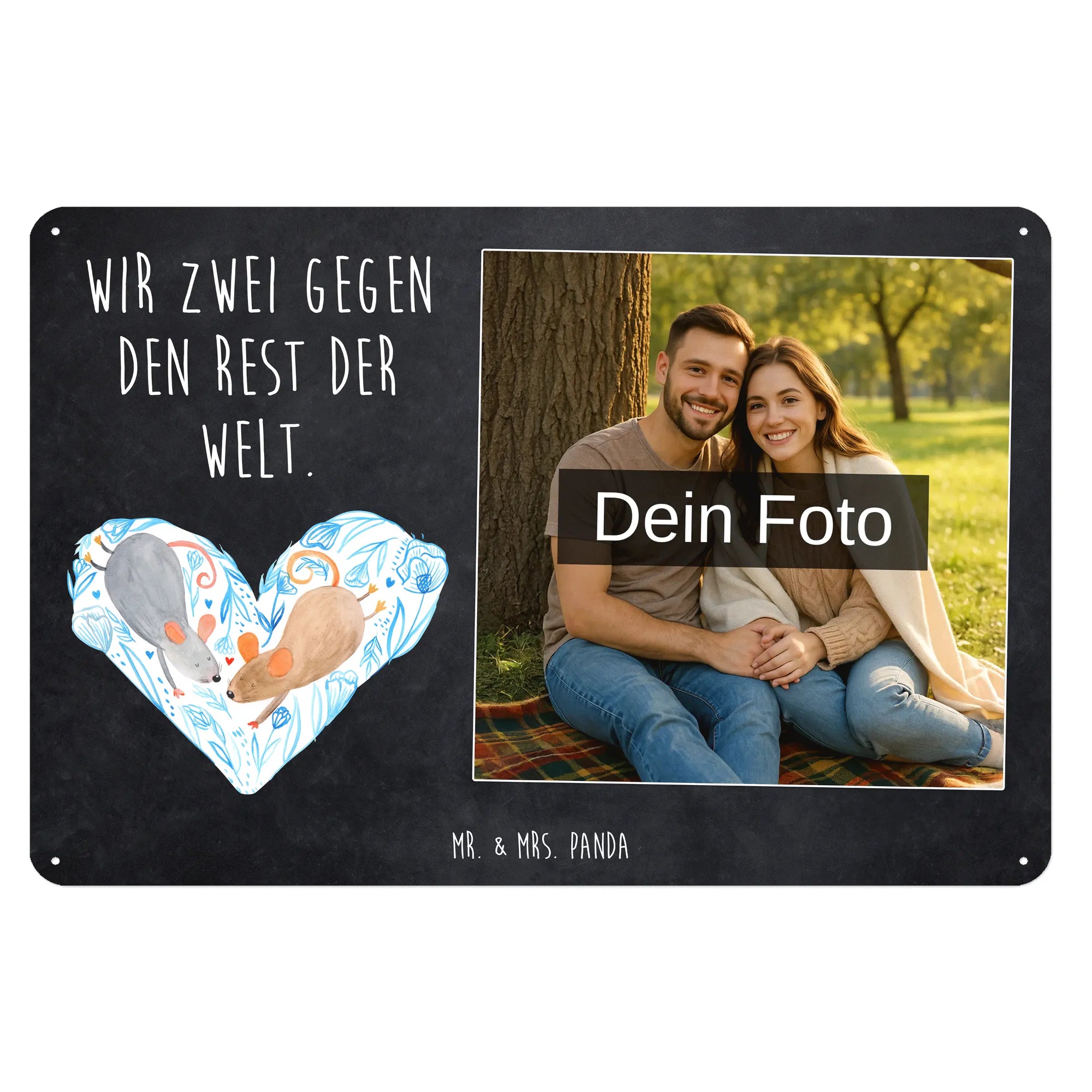Gestalte jetzt dein einzigartiges Blechschild mit Foto von Mr. & Mrs. Panda – persönlich, edel und sofort zum Aufhängen!