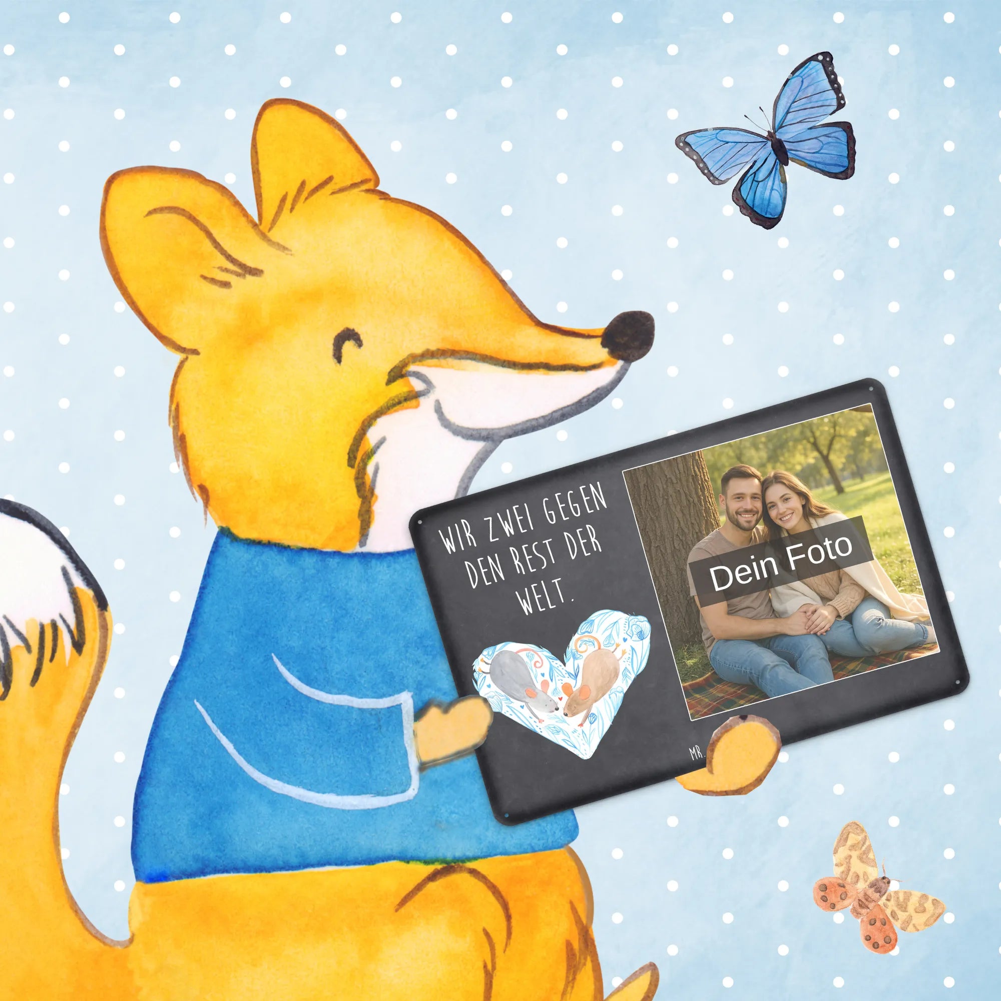 Gestalte dein persönliches Blechschild: Lade dein Foto hoch und kreiere ein einzigartiges Geschenk mit Mr. & Mrs. Panda – schnell gefertigt, liebevoll verpackt.