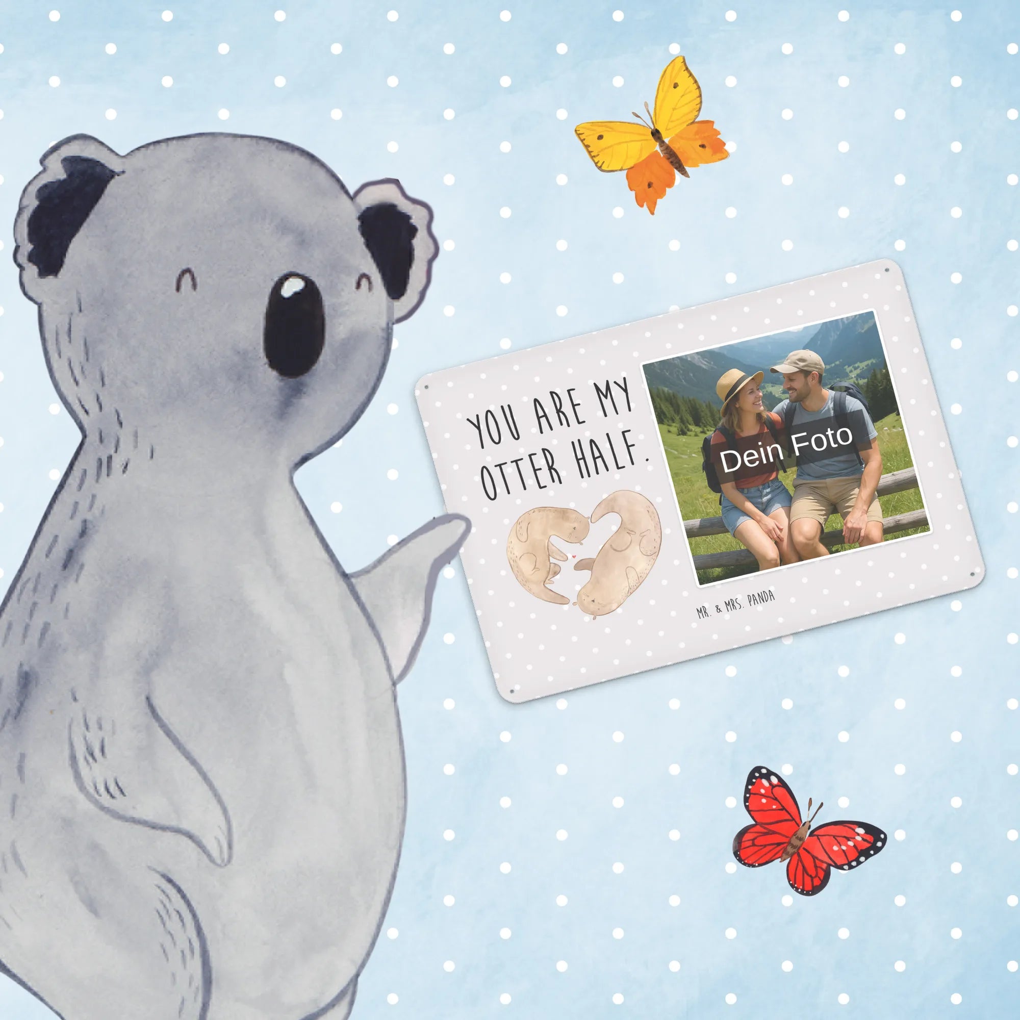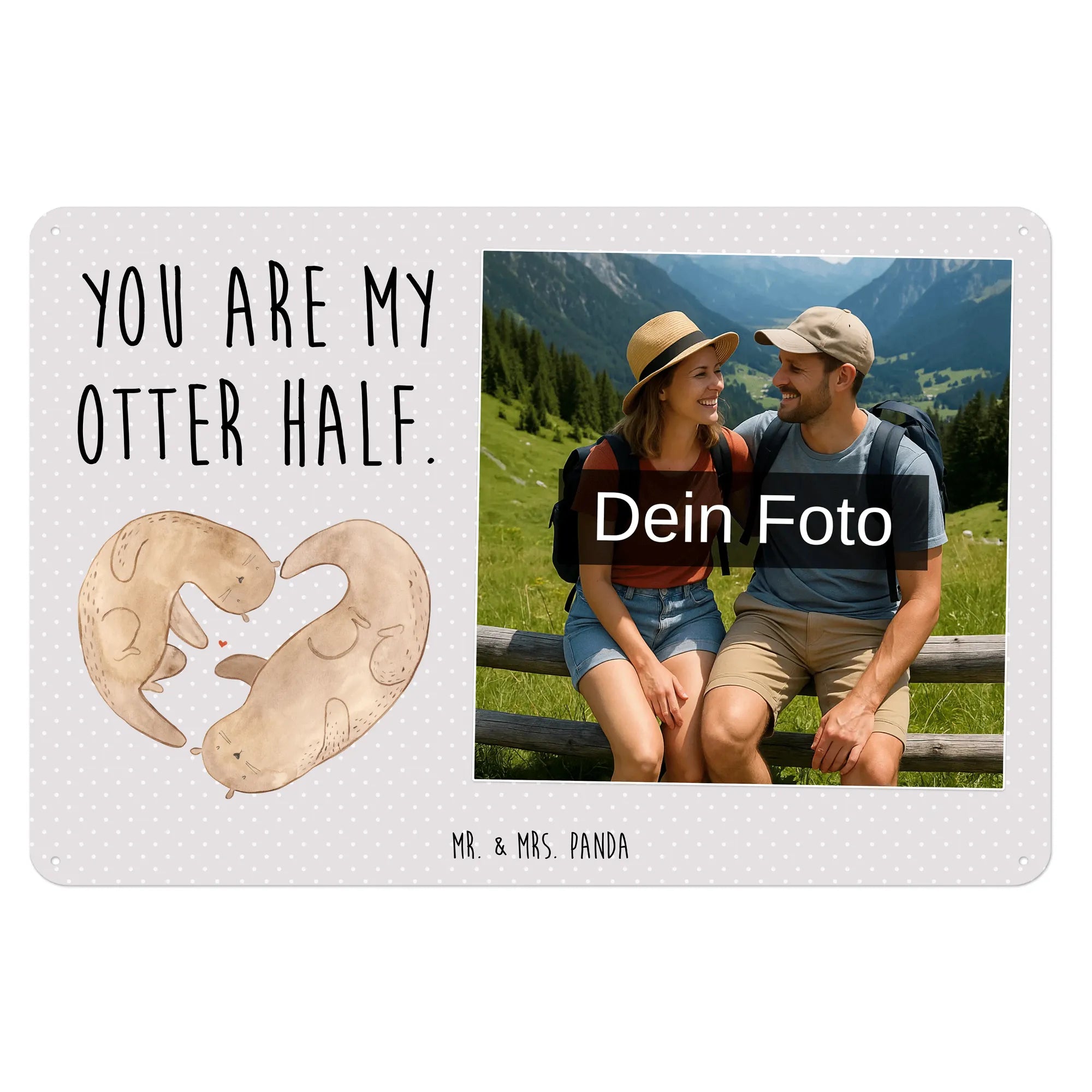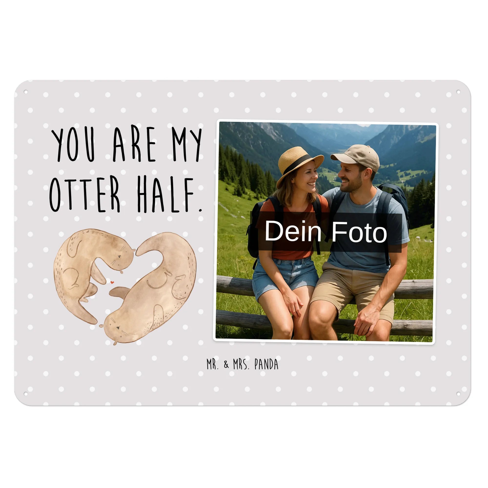 Mach es persönlich: Lade dein Foto hoch und gestalte jetzt dein Foto-Blechschild personalisiert mit Mr. & Mrs. Panda – schnell, einfach und liebevoll gestaltet.