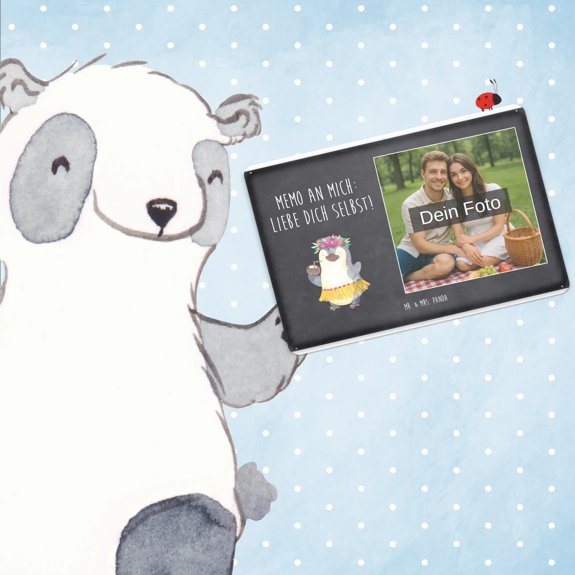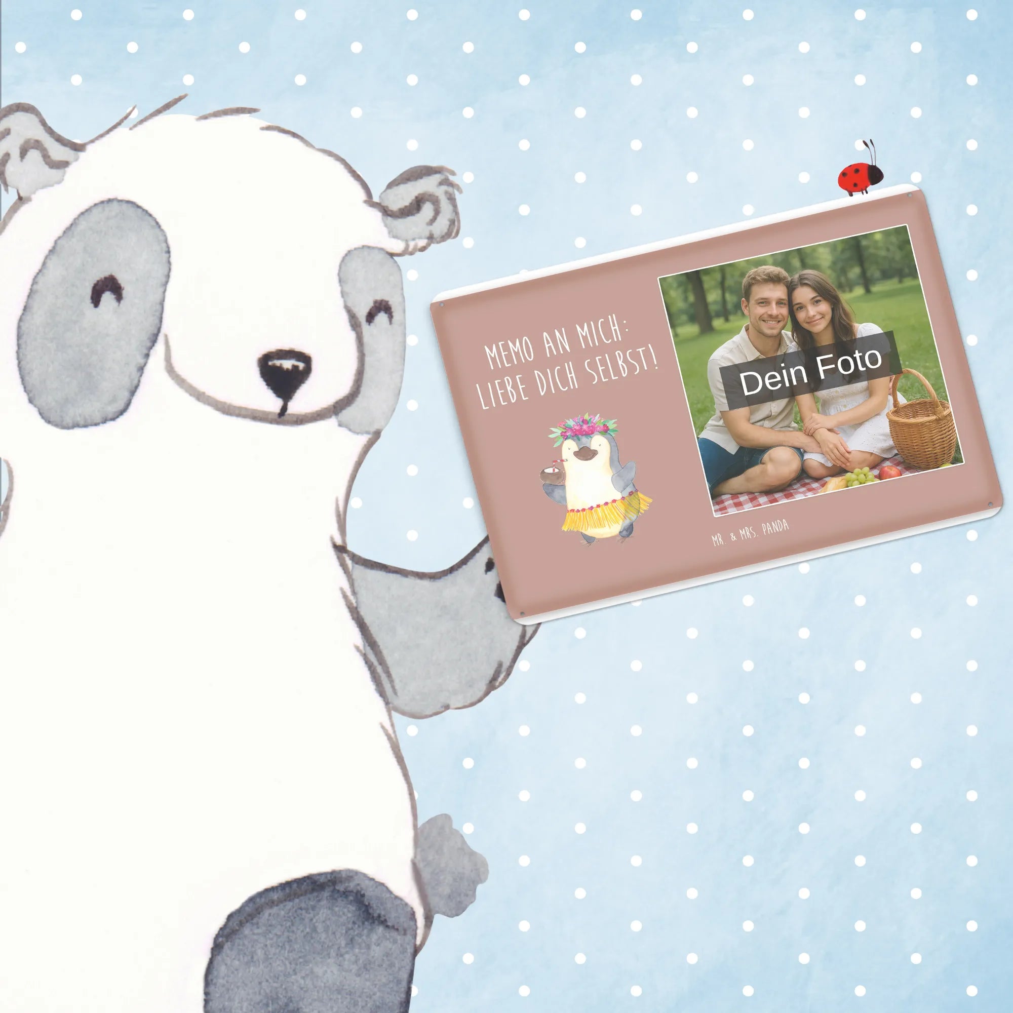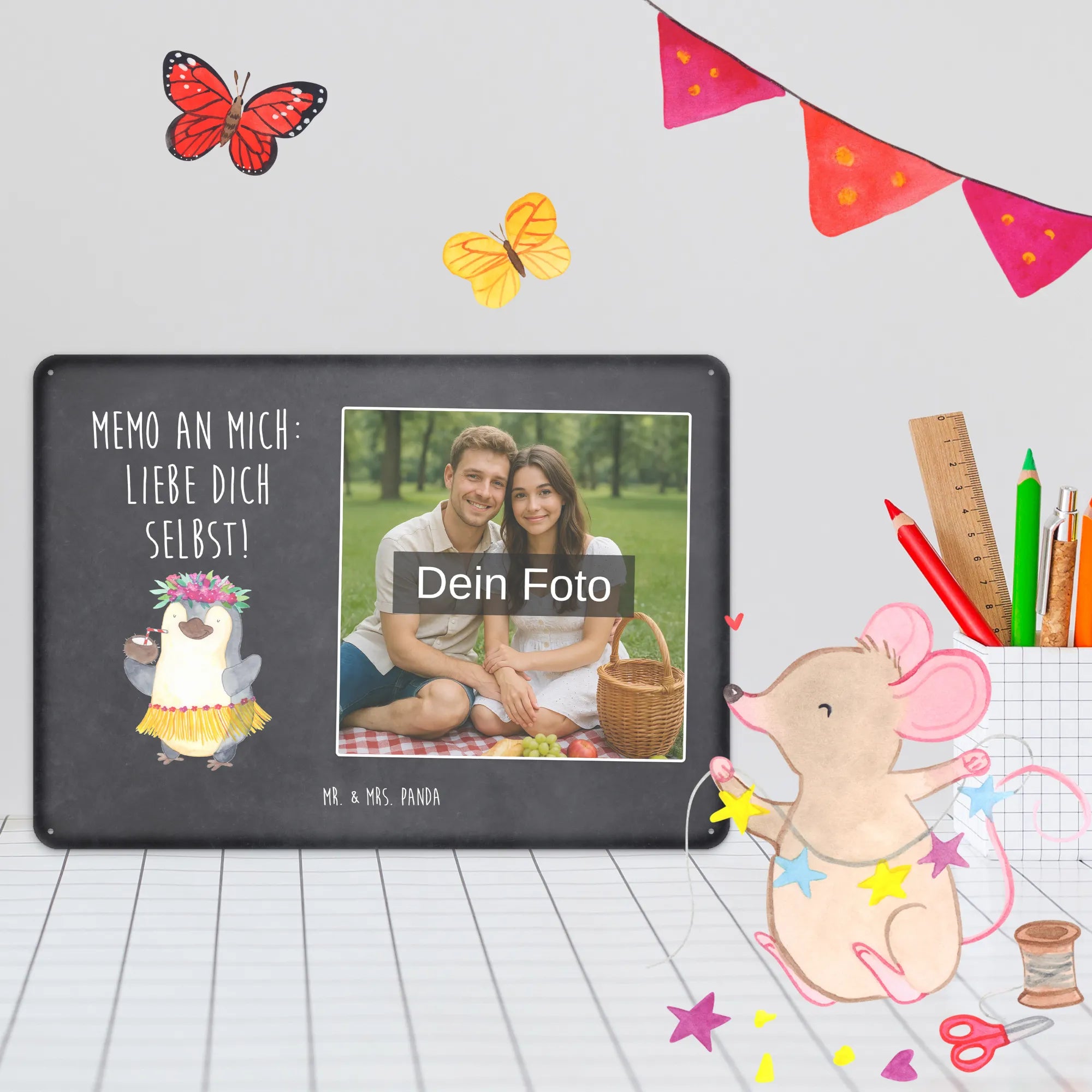 Gestalte dein persönliches Blechschild von Mr. & Mrs. Panda – verschenke Erinnerungen mit Stil!