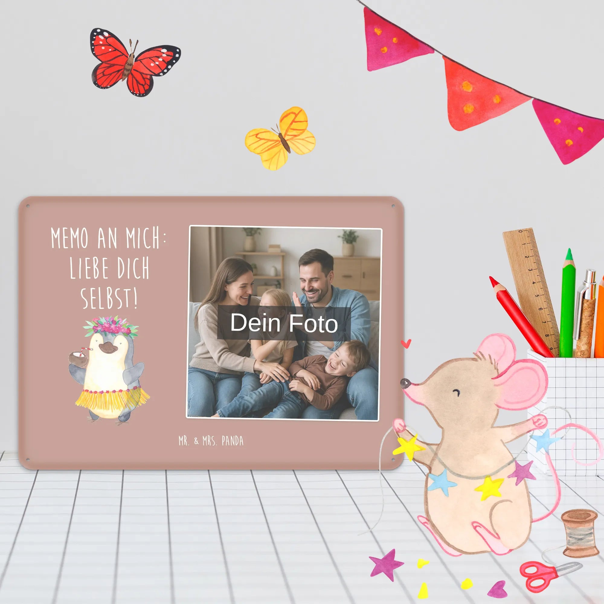 Mach dein Zuhause einzigartig – personalisiere jetzt dein Foto Blechschild von Mr. & Mrs. Panda und verschenke Erinnerungen.