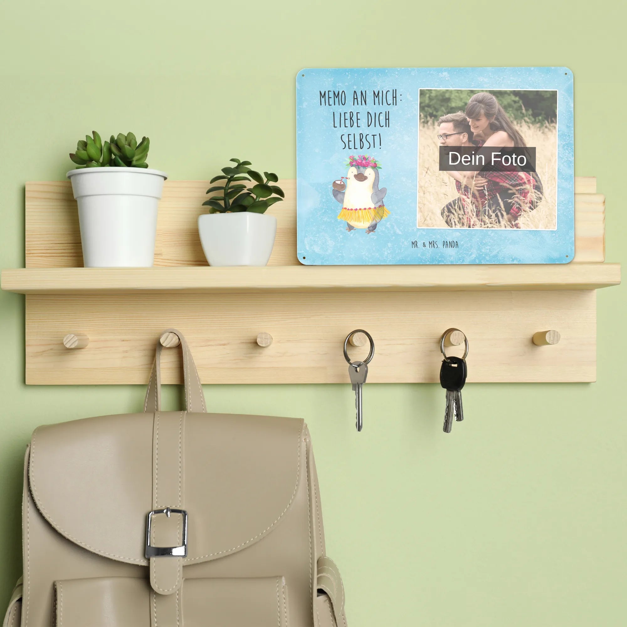 Ein bezauberndes Blechschild mit Foto personalisiert von Mr. & Mrs. Panda – das ideale Geschenk für besondere Anlässe oder als süße Türdekoration. Das Schild ist edel und seidenmatt bedruckt, versehen mit charmanten Sprüchen und Panda-Motiven, und wird mit deinem Wunschfoto individuell gestaltet. Damit das Ergebnis perfekt wird, achte auf eine hohe Bildauflösung, einen passenden Ausschnitt und die Bildrechte. Maße: 70 mm x 148 mm x 105 mm. Das Material ist hochwertiges Stahlblech ohne Wölbung, die Kanten sind umgefalzt und die Ecken abgerundet. Vier Bohrungen erleichtern die Montage an Tür oder Wand – optimal für den Innenbereich. Der Druck ist langlebig und wirkt sehr edel. Pflegehinweis: mit einem feuchten Tuch abwischbar. Besonderheit: erhältlich in mehreren Größen, so findest du garantiert die richtige Version. Dieses Blechschild mit Foto personalisiert bringt liebevolle Atmosphäre in jeden Raum und ist ein wunderbarer Blickfang.