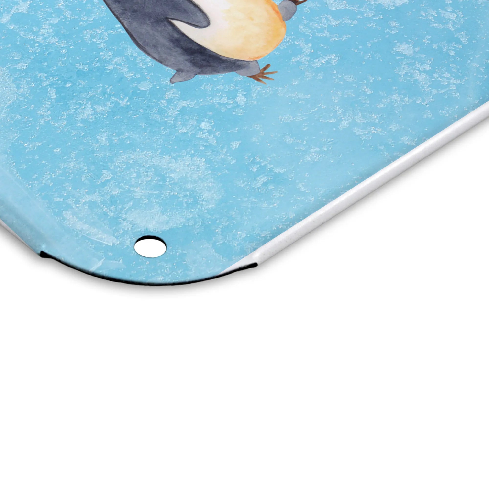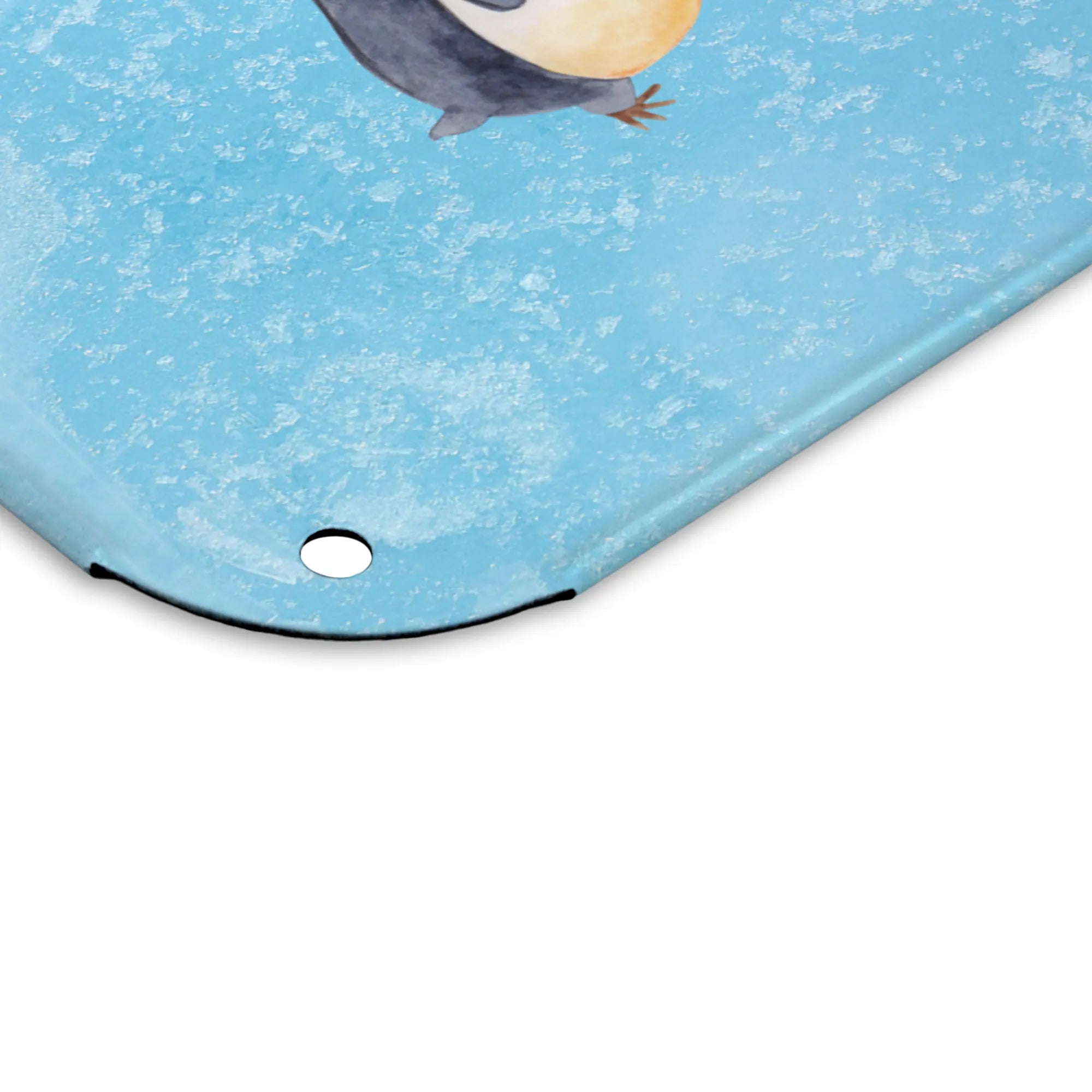 Eigenes Foto auf Blechschild Pinguin marschieren - DIN A6 - Eisblau