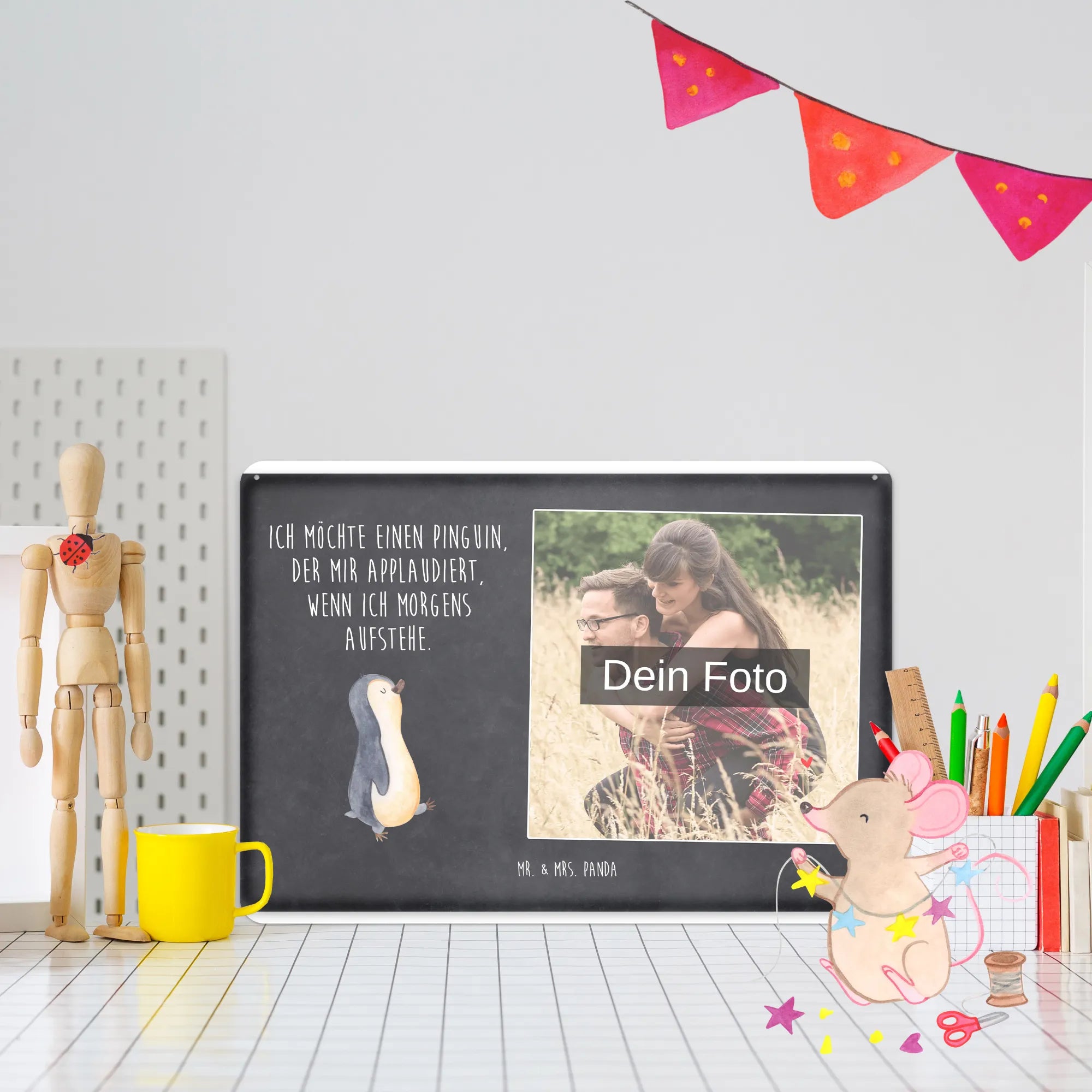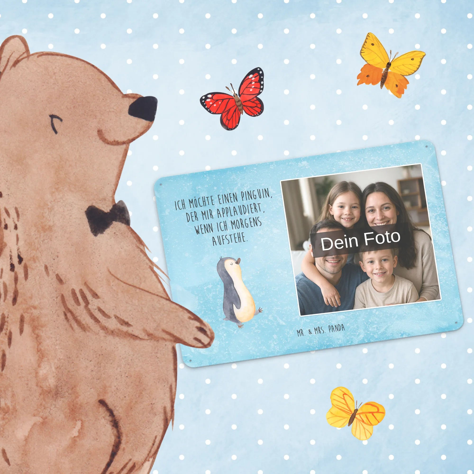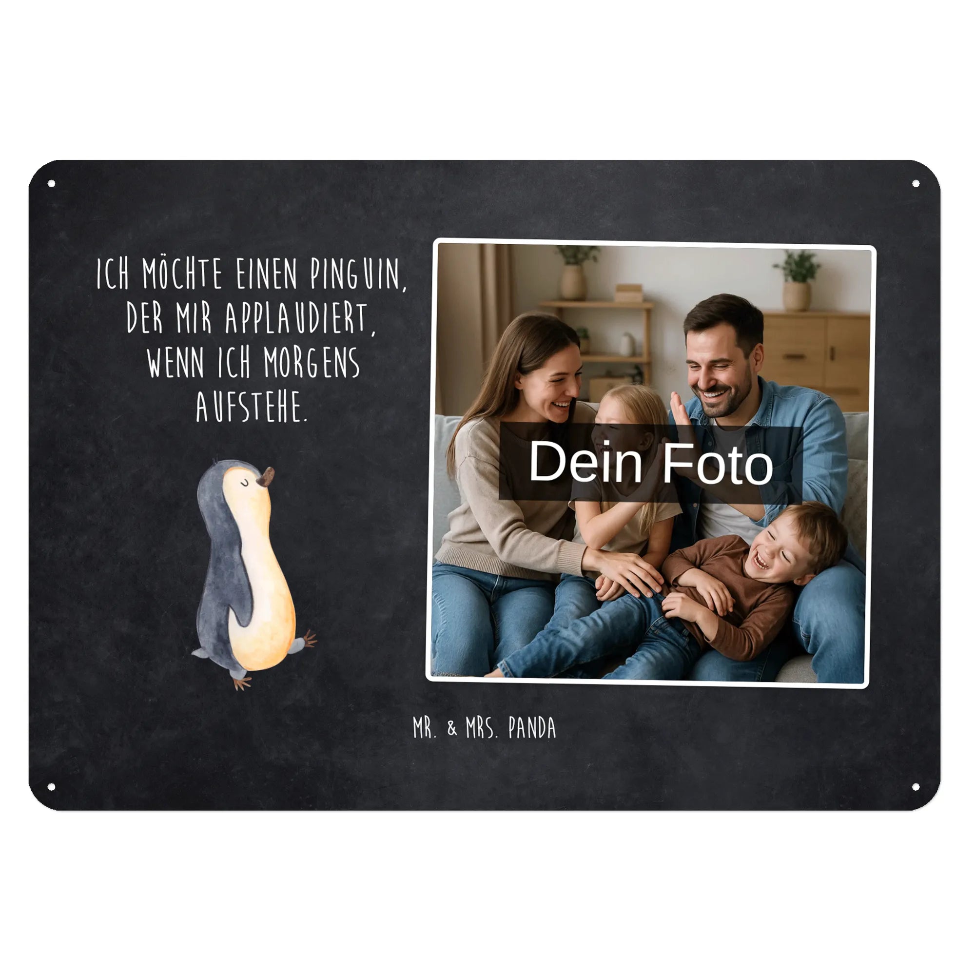 Mach es persönlich: Lade dein Foto hoch und gestalte jetzt dein Foto-Blechschild personalisiert mit Mr. & Mrs. Panda – schnell, einfach und liebevoll gestaltet.