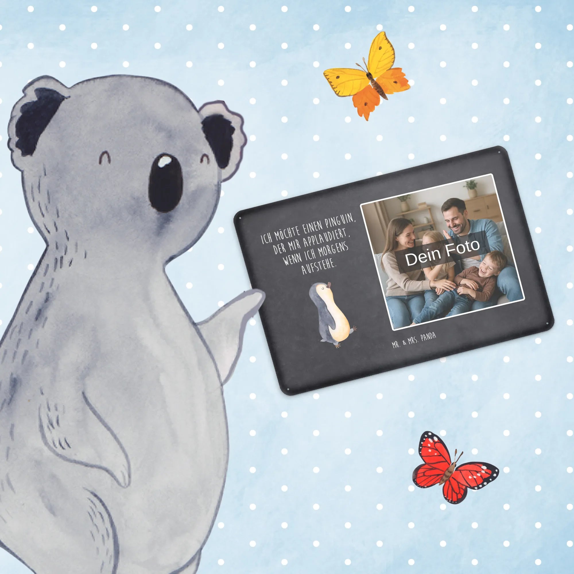 Jetzt personalisieren: Gestalte dein individuelles Foto Blechschild von Mr. & Mrs. Panda und verschenke Freude — einfach Foto hochladen & bestellen!