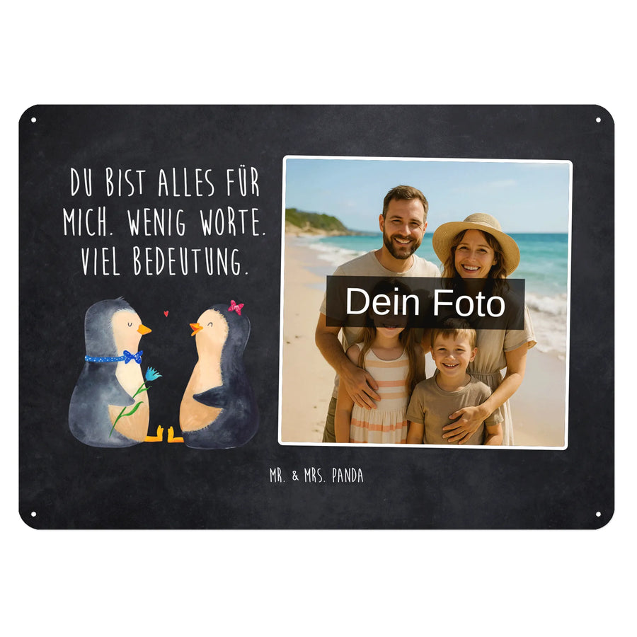 Personalisiertes Foto Blechschild Pinguin Pärchen - DIN A6 - Kreidetafel