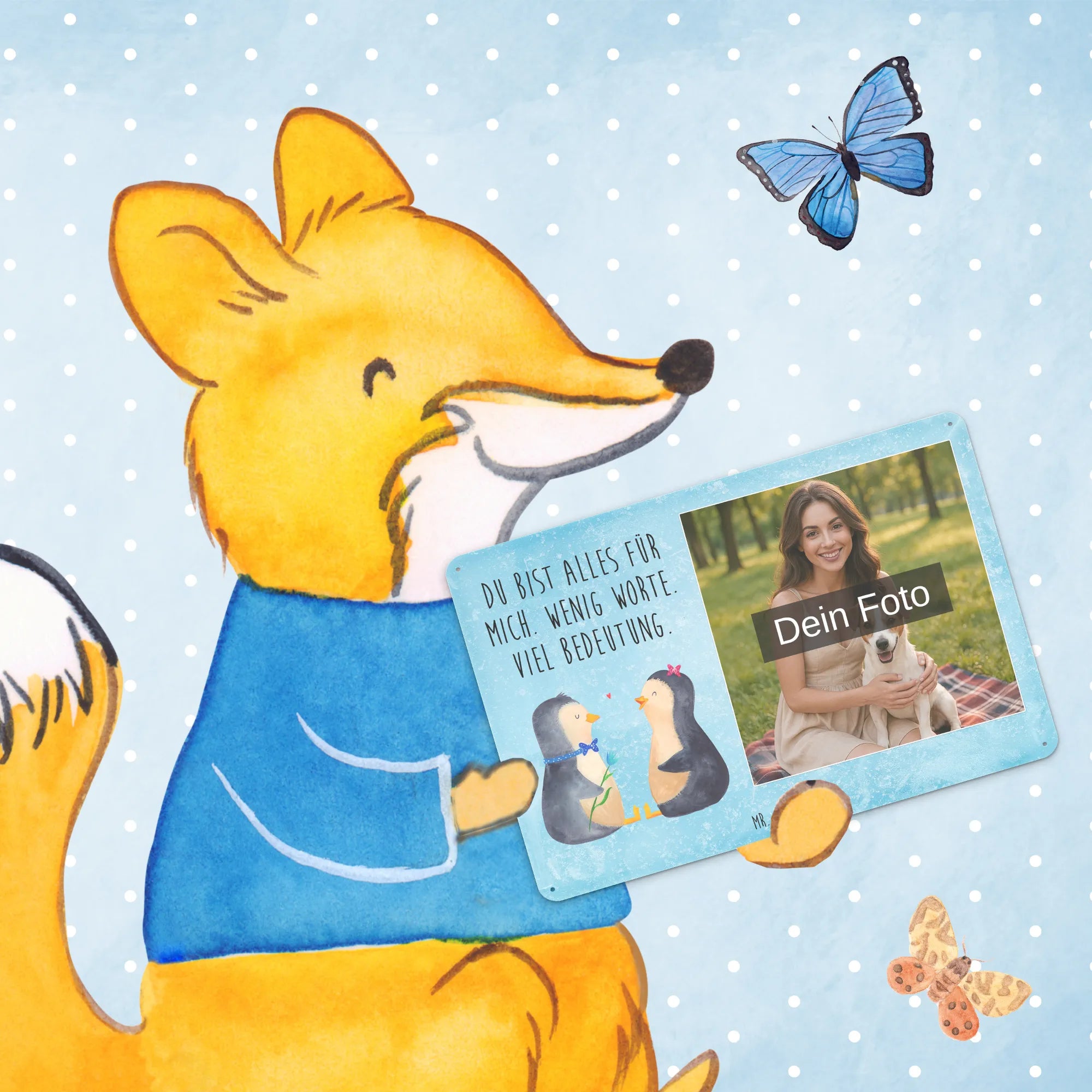 Schenke Persönlichkeit: Erstelle jetzt dein personalisierbares Blechschild Foto mit Mr. & Mrs. Panda – Foto hochladen, Text hinzufügen, bestellen und Freude verschenken.