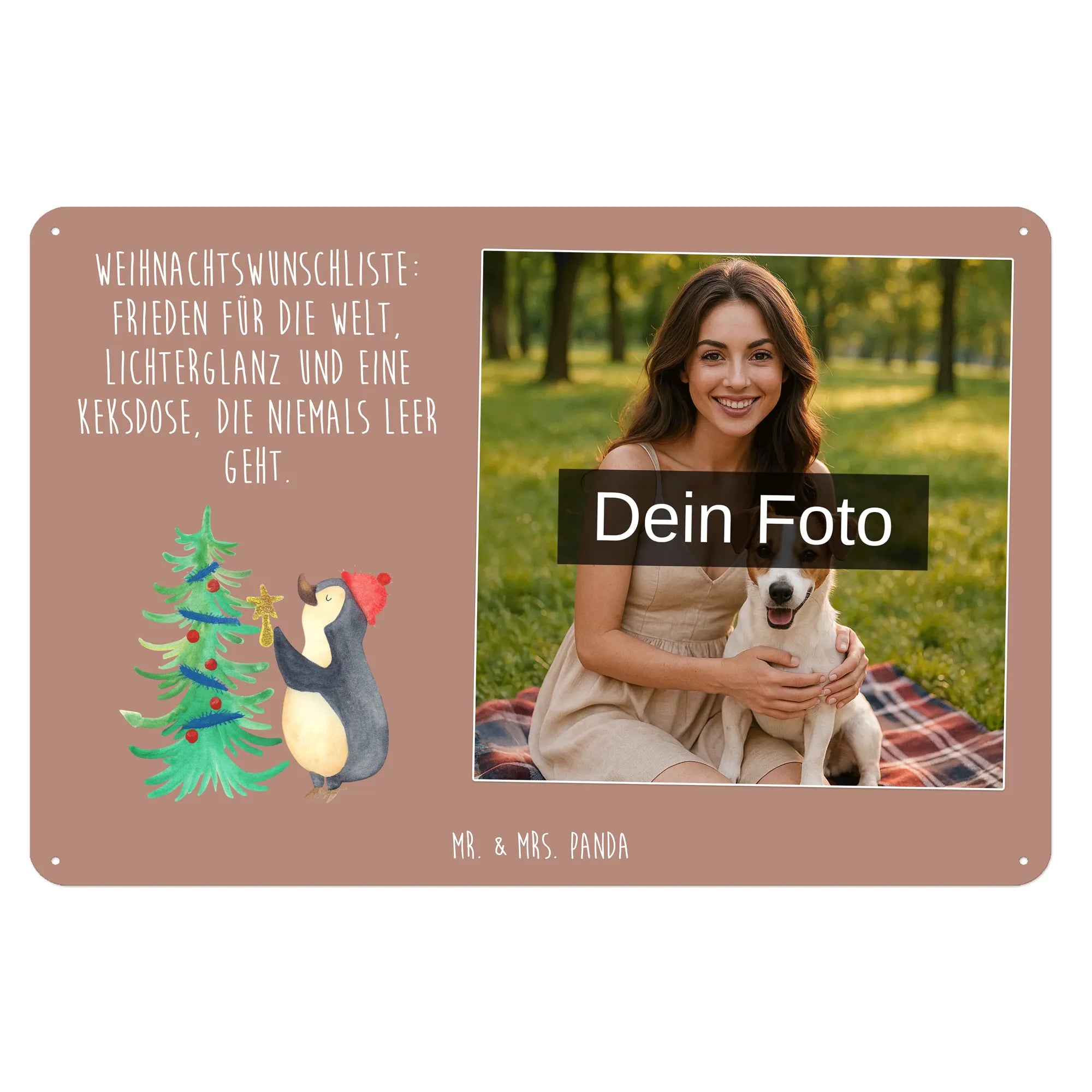 Personalisiertes Foto Blechschild Pinguin Weihnachtsbaum - DIN A6 - Braun Pastell