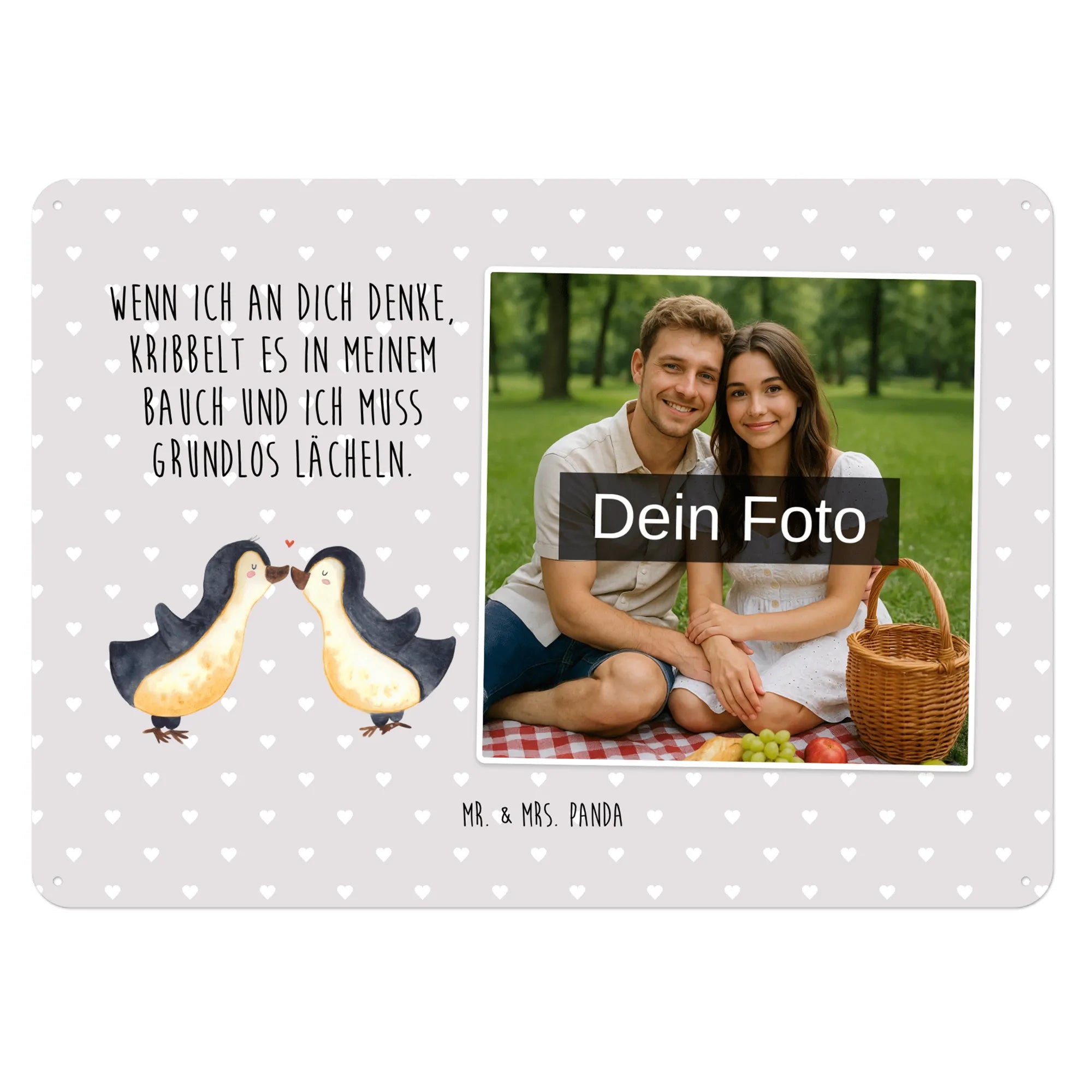 Personalisierbares Blechschild mit Foto von Mr. & Mrs. Panda – süß, edel und einzigartig. Du kannst dein eigenes Foto hochladen und wir drucken es zusammen mit liebevollen Sprüchen und niedlichen Motiven von Mr. & Mrs. Panda. Damit das Ergebnis perfekt wird, achte auf eine hohe Bildauflösung und einen passenden Bildausschnitt, damit Gesichter und Details nicht verloren gehen. Bitte nur Bilder verwenden, bei denen du die Rechte besitzt. Das Schild ist aus hochwertigem Stahlblech gefertigt, hat eine seidenmatte Oberfläche und ist ohne Wölbung gearbeitet. Maße: 70 mm x 297 mm x 210 mm. Der Druck ist langlebig und wirkt sehr edel. Für eine einfache Montage sorgen vier Bohrungen und umgefaltete Kanten, abgerundete Ecken geben dem Schild ein sanftes Aussehen. Ideal als Geschenk oder als persönliche Deko an der Tür oder an der Wand im Innenbereich. Pflegeleicht und alltagstauglich – einfach mit einem feuchten Tuch abwischen. In verschiedenen Größen erhältlich, damit du genau das Richtige findest. Mit diesem personalisierten Foto Blechschild schenkst du Erinnerungen, die man sehen und anfassen kann.