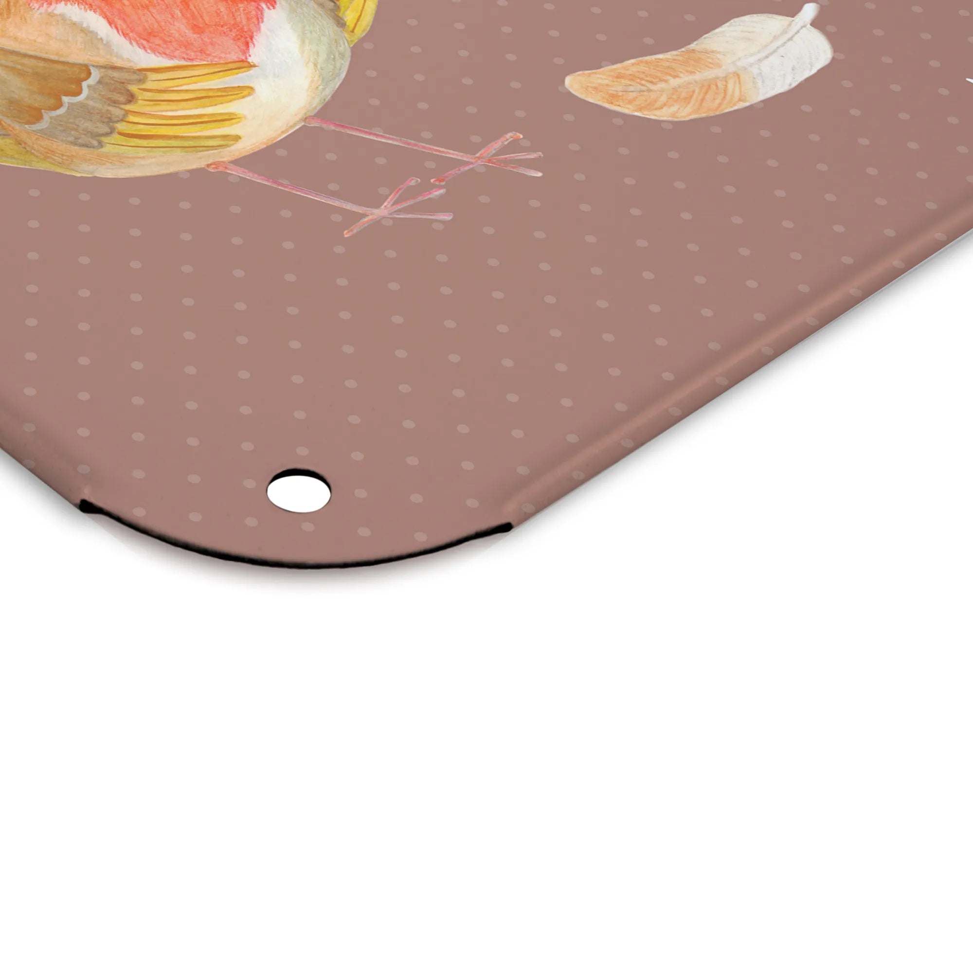 Personalisiertes Foto Blechschild Rotkehlchen Federn - DIN A6 - Braun Pastell