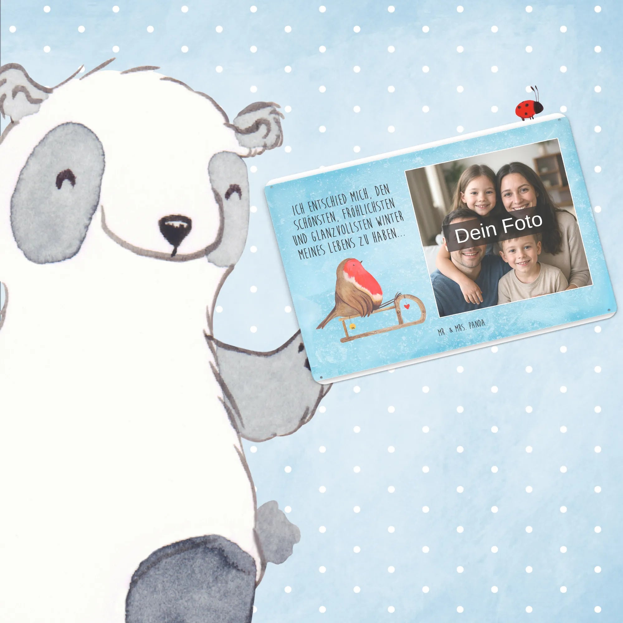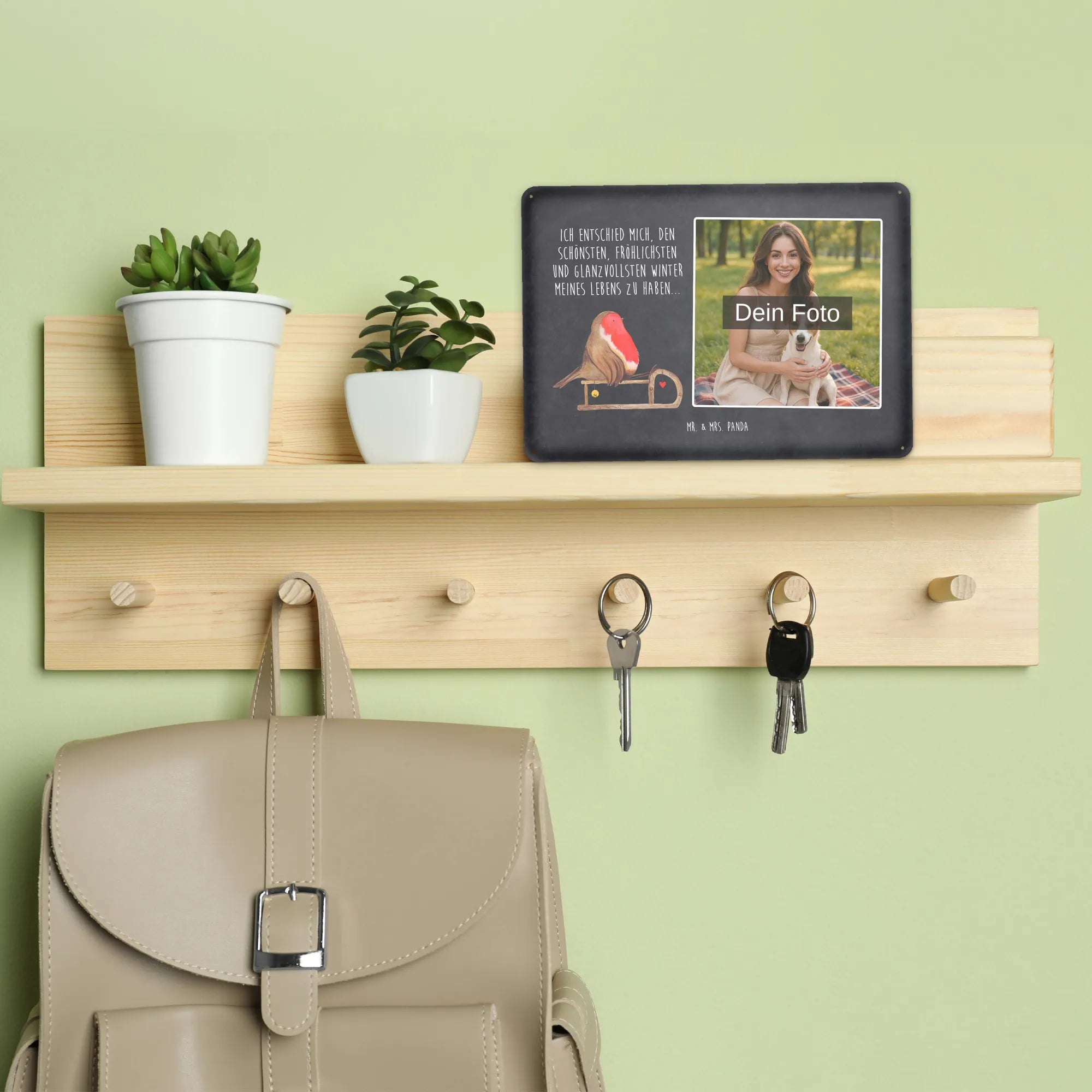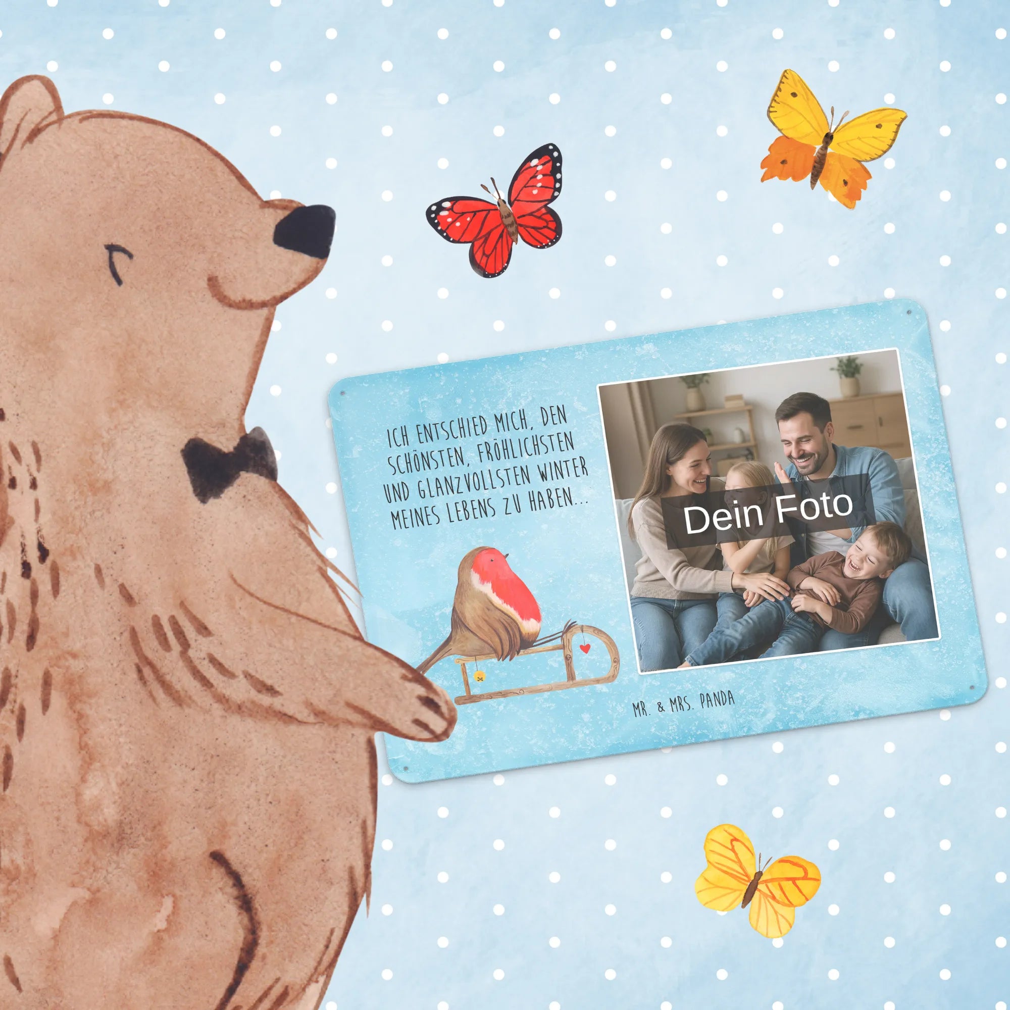 Personalisiertes Foto Blechschild Rotkehlchen Schlitten - DIN A6 - Kreidetafel