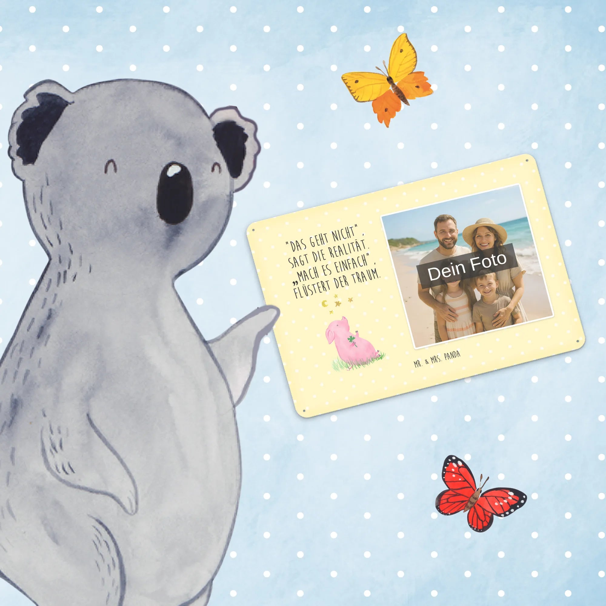 Personalisiertes Foto Blechschild Schwein Glück - DIN A6 - Gelb Pastell