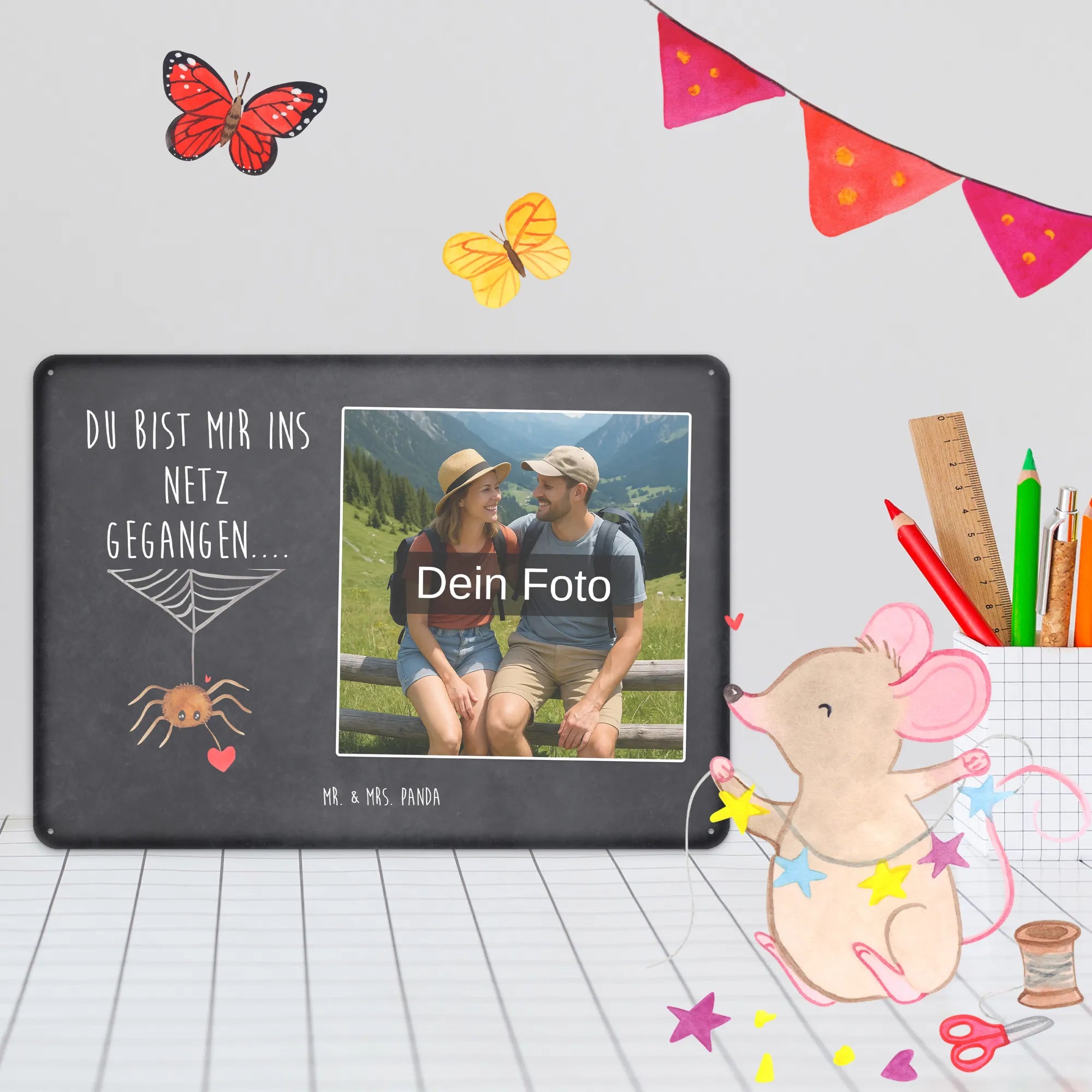 Gestalte dein persönliches Blechschild von Mr. & Mrs. Panda – verschenke Erinnerungen mit Stil!