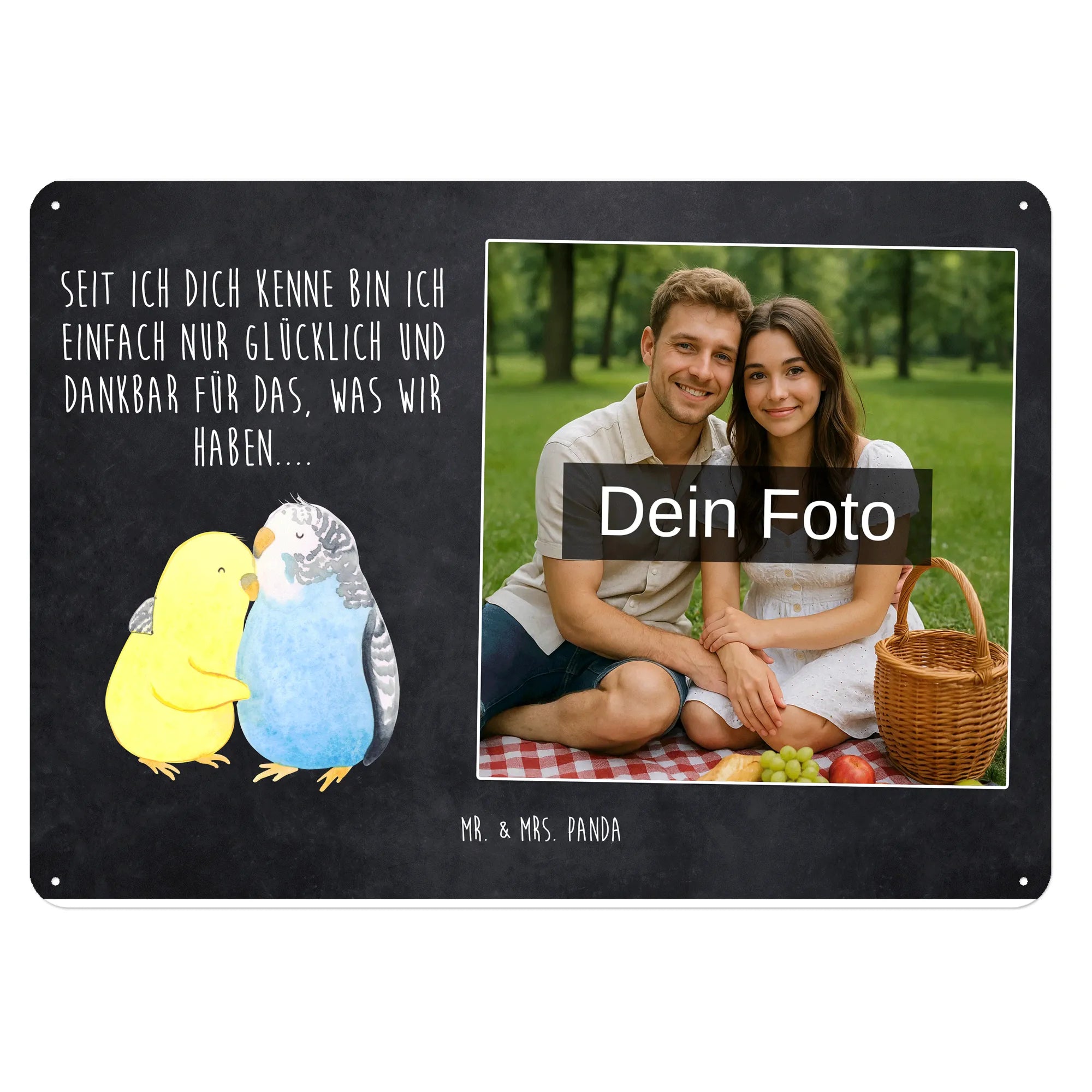 Personalisiertes Foto Blechschild Wellensittich Liebe - DIN A6 - Kreidetafel