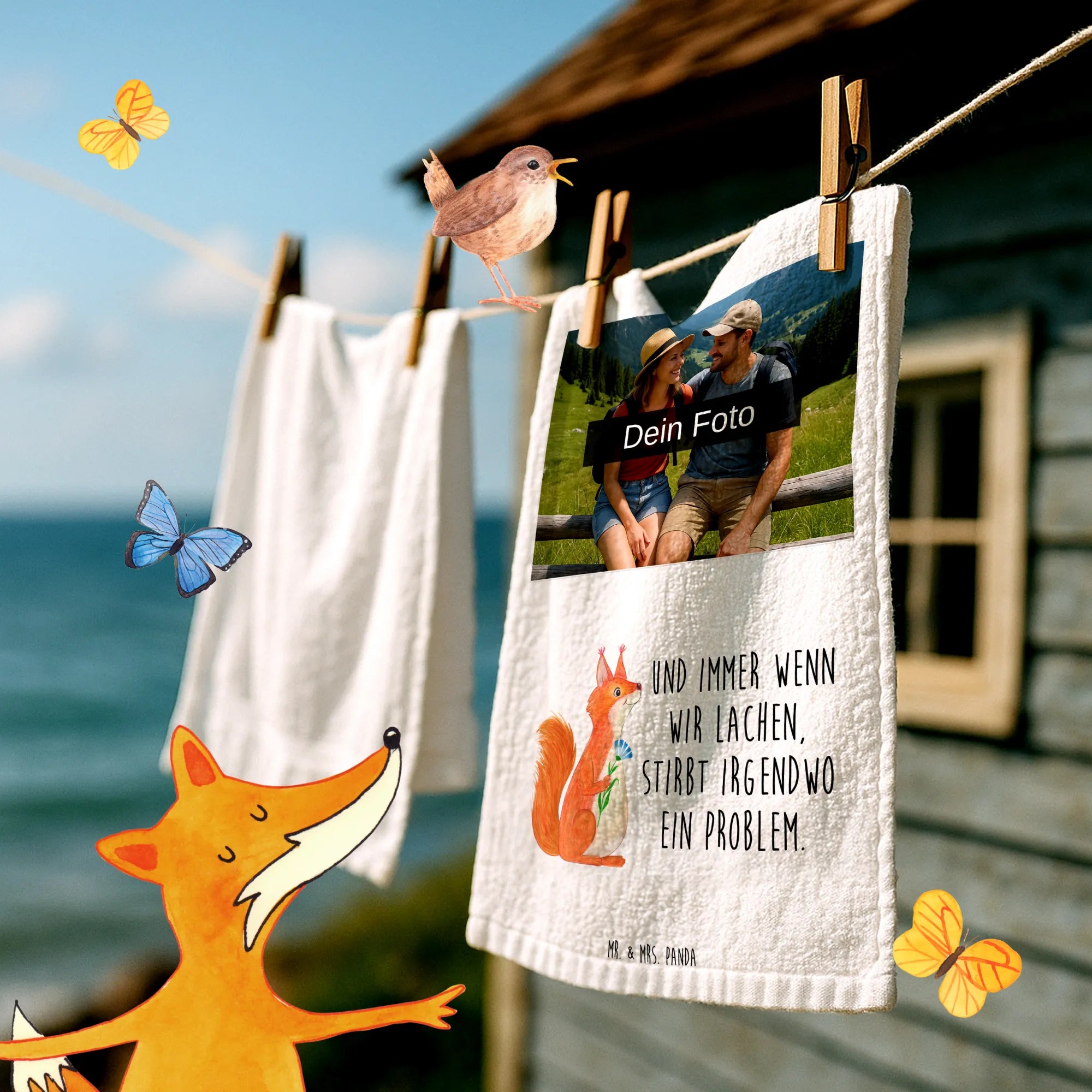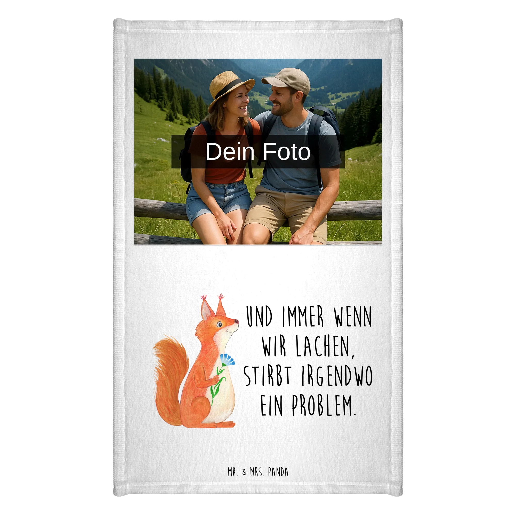 Belebe dein Bad mit einem personalisierten Foto Gästehandtuch von Mr. & Mrs. Panda! Mit seinen 300 mm x 500 mm bietet es dir ausreichend Platz für dein Wunschdesign. Die hochwertigen Drucke sind farbenfroh und fröhlich, perfekt für jeden Besucher. Ein eigenes Foto macht dieses Handtuch zu einem Unikat, also achte darauf, dass es gut aussieht und hochauflösend ist. Hergestellt aus einer flauschigen Baumwollmischung, ist es zudem angenehm auf der Haut. Und das Beste: Es ist bei 30°C in der Maschine waschbar, sodass du dir keine Gedanken über die Pflege machen musst. Ideal für dein Zuhause oder als liebevolles Geschenk!
