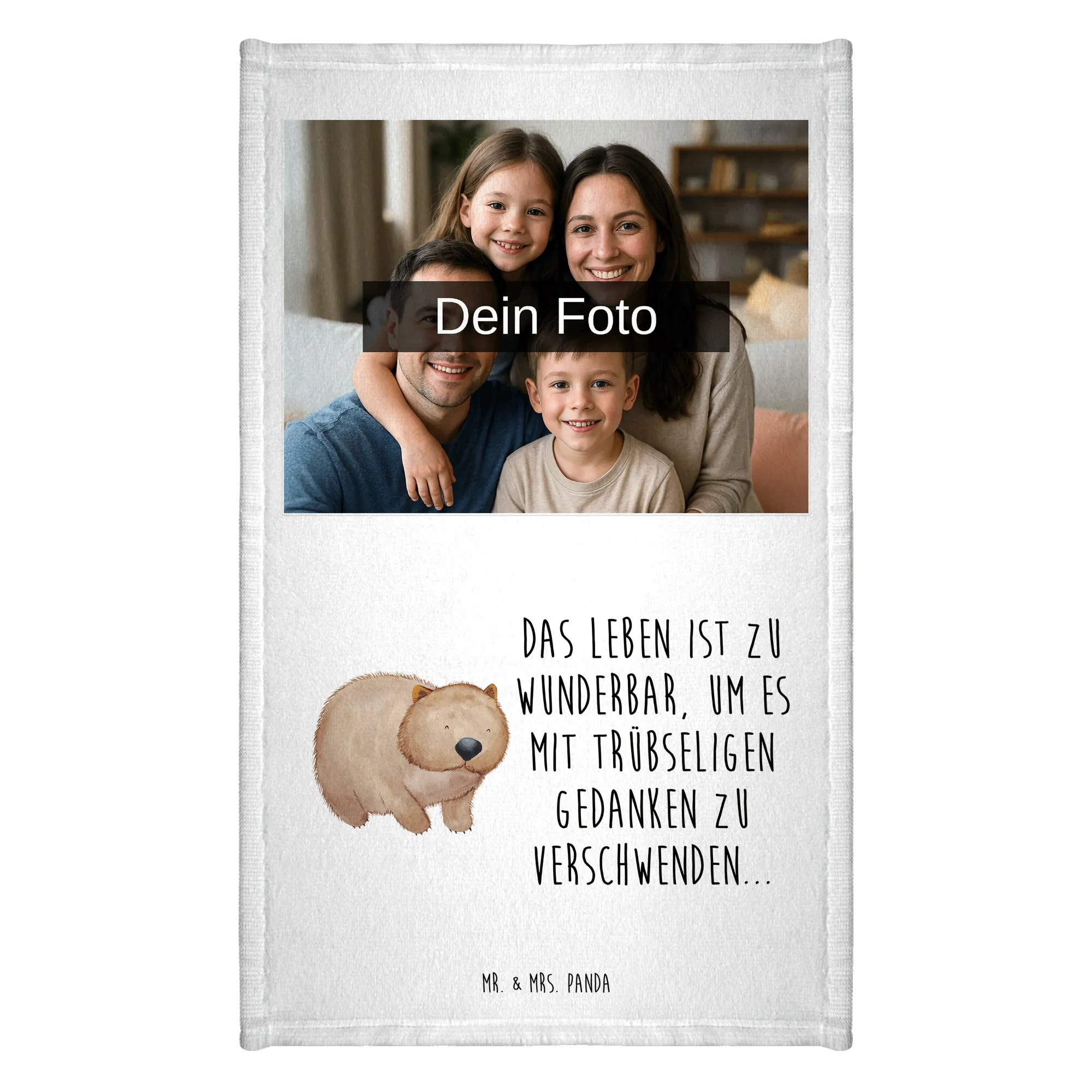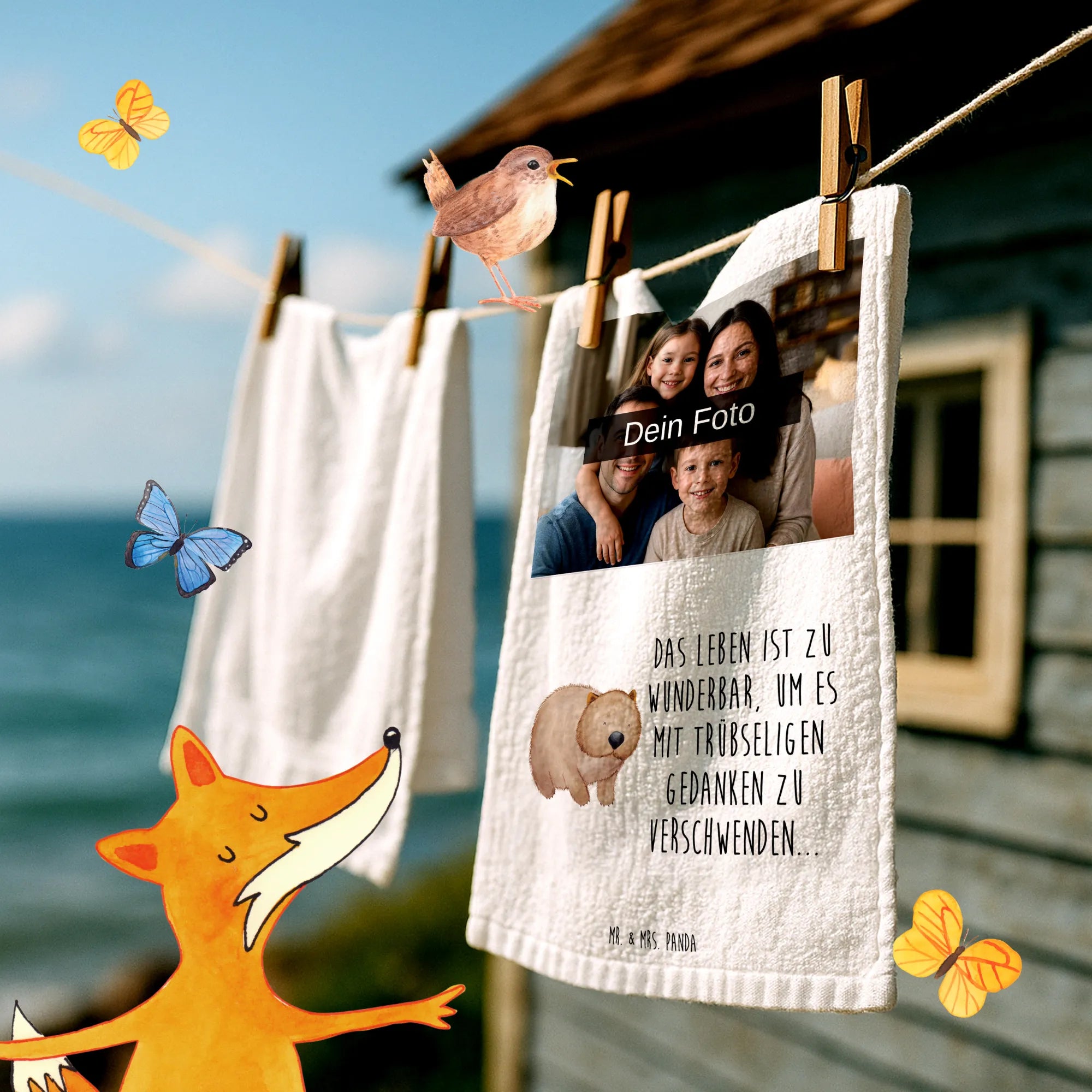 Erfreue dich an der Einzigartigkeit eines personalisierten Foto Gästehandtuchs von Mr. & Mrs. Panda! Mit seinen Maßen von 300 mm x 500 mm ist es ein idealer Begleiter für dein Gästebad. Das Handtuch besticht durch hochwertige Druckgrafiken mit den beliebten Illustrationen von Mr. & Mrs. Panda. Kreiere dein persönliches Handtuch mit einem Wunschfoto und bringe deine Erinnerungen in dein Badezimmer! Achte darauf, dass das Bild eine hohe Auflösung hat, damit die Farben strahlen können. Aus einer weichen Baumwollmischung gefertigt, sorgt es für besten Komfort. Pflege es einfach bei 30°C in der Maschine – schnell und unkompliziert! Ein tolles Geschenk für Freunde oder ein schöner Hingucker für dich selbst!