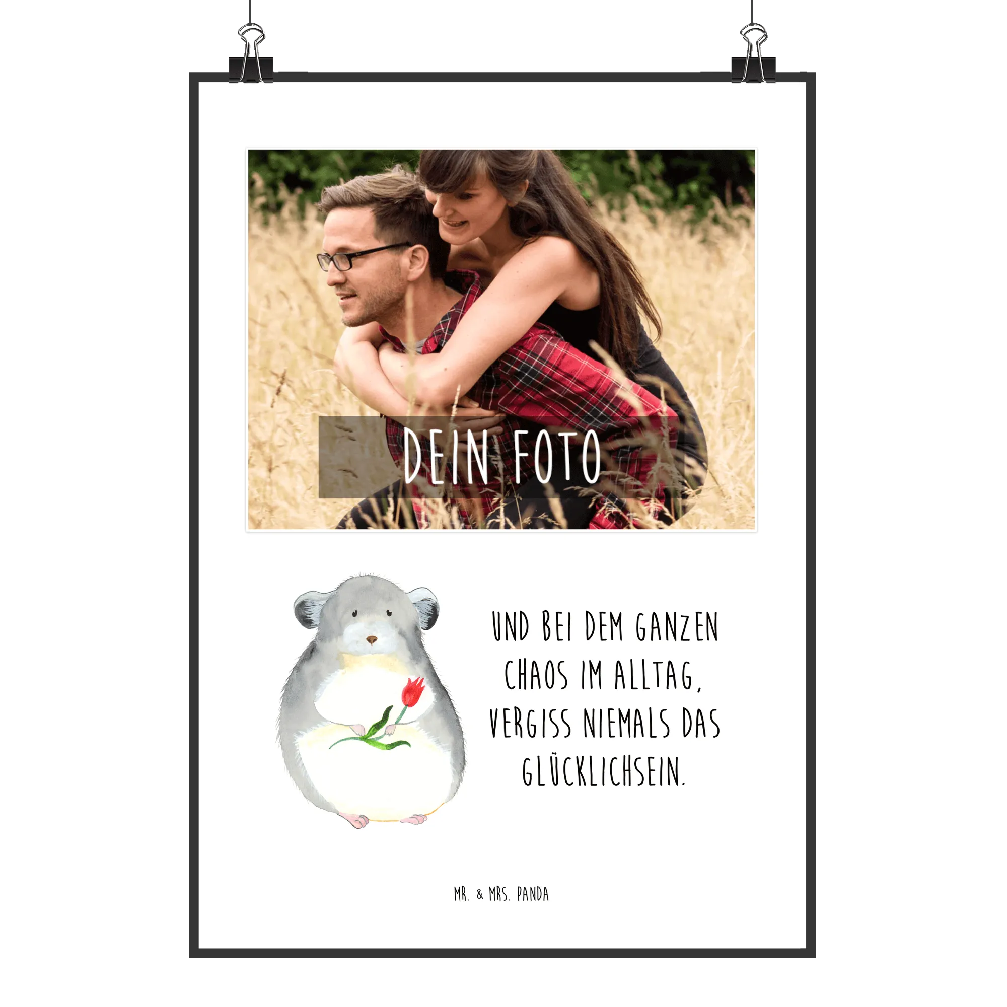 Das personalisierte Foto Poster "Chinchilla mit Blume" von Mr. & Mrs. Panda ist das perfekte Geschenk für Tierliebhaber und Menschen, die Freude und gute Laune schätzen! Ob für das Büro, das Schlafzimmer oder das Kinderzimmer – dieses niedliche Poster bringt immer ein Lächeln ins Gesicht.