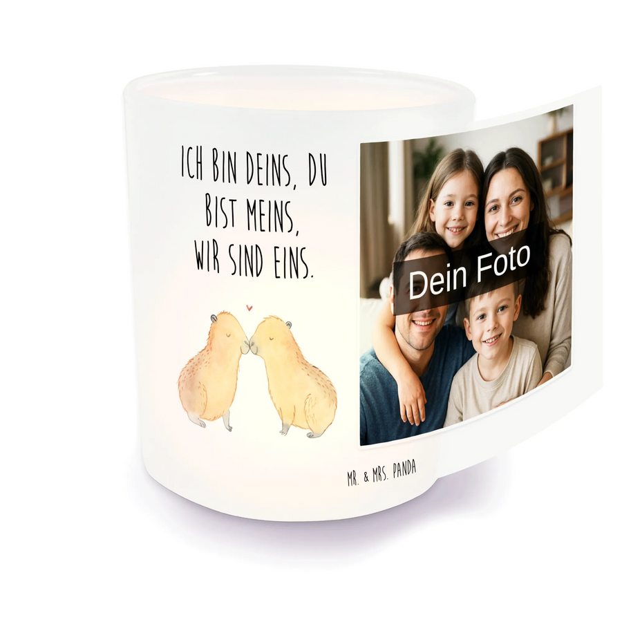 Möchtest du deiner Wohnung das gewisse Etwas verleihen? Unser personalisiertes Foto Windlicht von Mr. & Mrs. Panda ist die perfekte Lösung! Es misst 70 mm x 80 mm und ist aus hochwertigem satiniertem Glas gefertigt. Mit deinem eigenen Wunschfoto personalisieren kannst du jedem Raum eine besondere Note verleihen. Denk daran, ein Bild in hoher Auflösung hochzuladen, um die Klarheit zu garantieren. Achte darauf, dass der Bildausschnitt gut passt, denn du willst ja nichts Wichtigeres verlieren! Das Windlicht schützt deine Teelichter nicht nur vor Wind, es schafft auch eine unglaublich romantische Stimmung. Pflege dein Windlicht mit sanfter Handwäsche, damit es lange so schön bleibt. Lass deine Räume in neuem Licht erstrahlen!
