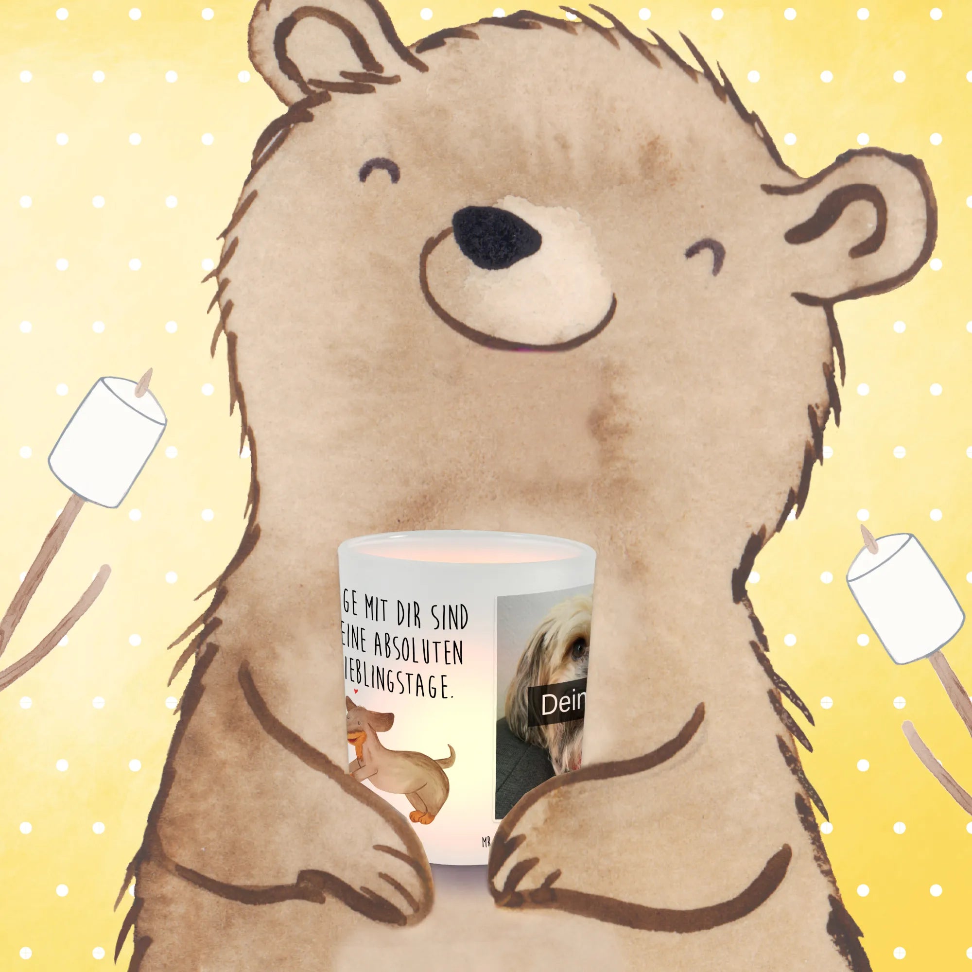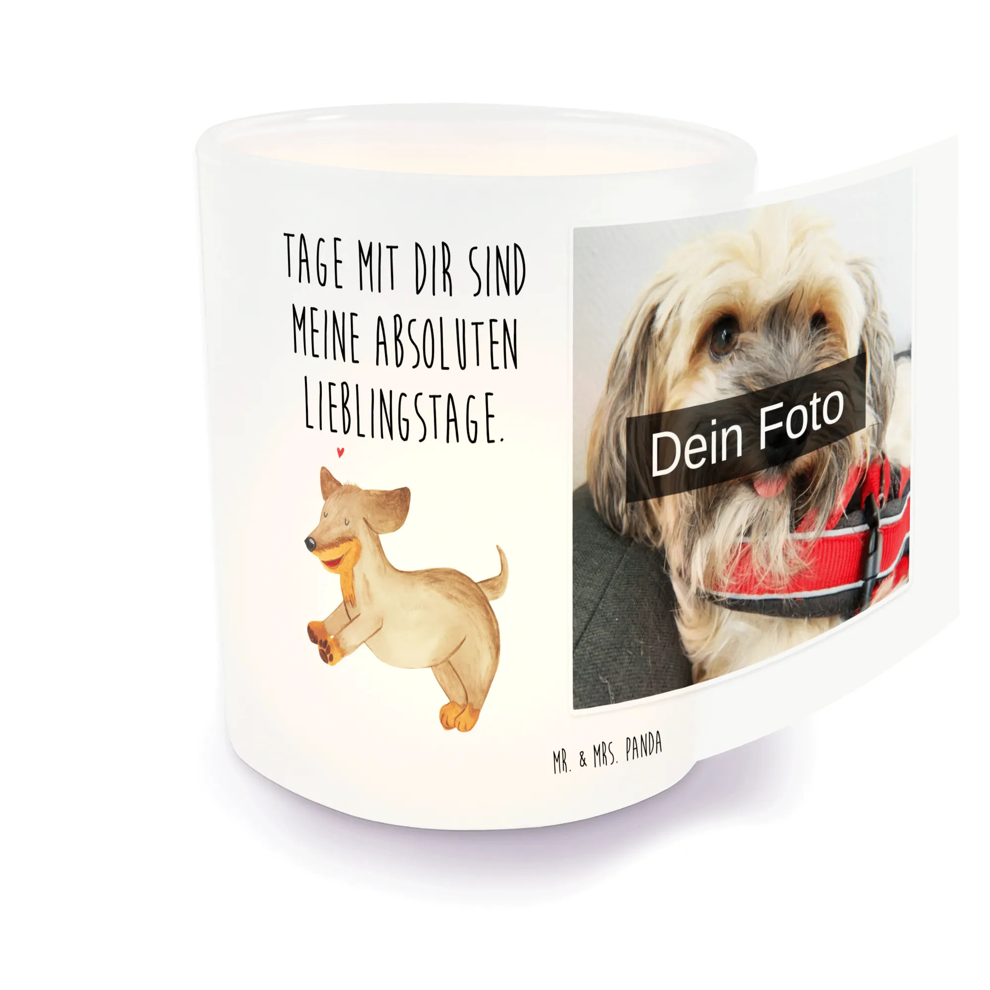 Gemütlichkeit und Stil vereint – das ist unser personalisiertes Foto Windlicht von Mr. & Mrs. Panda! Dieses besondere Windlicht aus satiniertem Glas misst 70 mm x 80 mm und lässt sich mit deinem liebsten Foto personalisieren. Oh, denk daran, ein hochauflösendes Bild zu wählen, um sicherzustellen, dass alle Details gut aussehen. Überprüfe, wie das Bild ausgeschnitten ist, denn es wäre schade, wenn wichtige Teile abgeschnitten werden. Es eignet sich hervorragend für Teelichter und schützt sie vor dem Wind, sodass du überall eine romantische Atmosphäre schaffen kannst. Pflege es am besten mit sanfter Handwäsche, damit es dir lange Freude bereitet. Verwandle dein Zuhause in einen Ort voller Licht und Liebe!